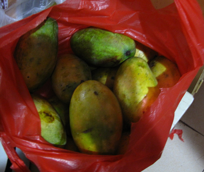 这种芒果我们这很多,在树上成熟的,不过我不喜欢吃,没去摘。 |