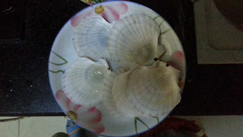 ![]() 前几天带姑娘逛永辉的时候正好赶上扇贝特价,就买了几个准备自己动手做一道菜,提升一下生活品质。 材料:扇贝6只,龙口粉丝1把,金针菇1把,大蒜2头,小香葱1根。 准备工作:首先将龙口粉丝用温水浸泡2小时,金针菇去根洗净焯水控干备用。扇贝掰开后去掉黑色的部位及沙包(这里要感谢一下度娘及分享经验的吃货们,因为第一次尝试做这道菜,菜谱及扇贝的处理都是现查的),用小刀小心的将贝肉及扇贝黄起下来盛在碗中,仔细清洗后倒入少许料酒腌一下,去去腥。扇贝壳用牙刷仔细刷洗干净,放在一旁备用。大蒜剥皮后放在小碗中加少许盐用擀面杖捣成蒜泥,油锅加大约蒜泥2倍的食用油,将蒜泥炒至金黄盛出放凉,加入适当蒸鱼豉油备用。