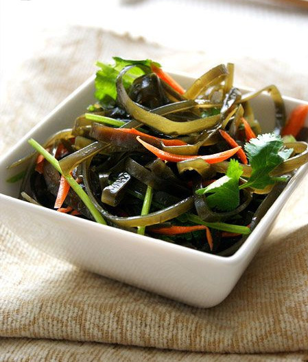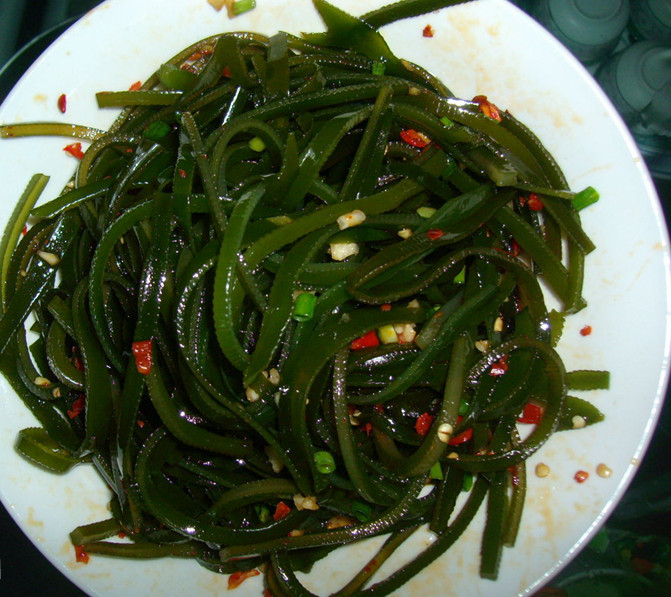 ![]() 海带是一种海洋蔬菜,含碘、钙、磷、硒等多种人体必需的微量元素,其中钙含量是牛奶的10倍,可防治克汀病、软骨病、佝偻病。含磷量比所有的蔬菜都高,能防止血栓和血压升高,同时又有降低脂蛋白、胆固醇,抑制动脉粥样硬化以及防癌抗癌作用。亦可防治甲状腺肿大。现代药理学研究表明,吃海带可增强机体免疫力和抗辐射。另外,海带中含有丰富的纤维素,在人体肠道中好比是“清道夫”,能够及时地清除肠道内废物和毒素,因此,可以有效地防止直肠癌和便秘的发生。 对于女性而言,尤其要多吃海带,据说日本女人得乳腺癌的几率非常低,源于日本女人常食海带。所以,赶紧学做几样以海带为主要原料的菜肴吧。凉拌海带丝是以海带为主要食材的凉拌家常菜,口味爽滑、咸鲜微辣,老少皆宜。是夏日极佳的美食佳肴。最关键的是做法简单,对于我这下不得厨房的妈妈来说,做个凉拌海带丝倒也并不困难。 凉拌海带丝的做法如下: 备料:
