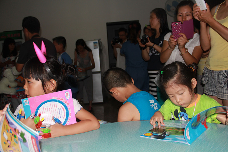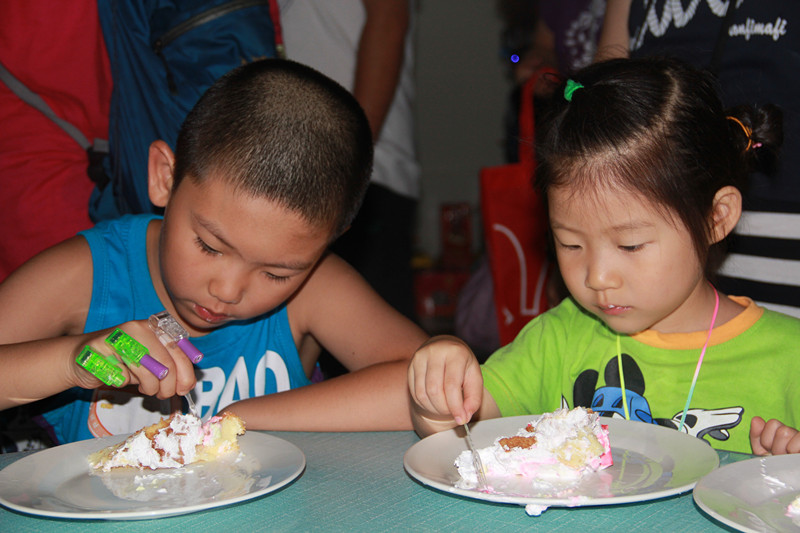 我们赶到的时候,读书会已经开始了。本来妈妈在房间里收拾东西,让敬仪自己在楼下玩。不一会儿敬仪上楼了,说别的小朋友都有妈妈陪着。于是就和小花一起参加读书会了。小朋友们脱了鞋坐在地垫上,故事大王辰辰爸正在讲托马斯时间管理互动绘本----先做重要的事,正好家里有这本书。 ![]() 不方便出去拍照,于是只能拍孩子的背影和家长的正面了。 ![]() 故事讲完了,主持人喆喆妈宣布生日会即将开始,全体成员转移到餐厅,这时候天空下起了小雨,送来丝丝凉意。 ![]() 这就是三位小寿星,在七月过生日的共有三个小朋友,晶晶当天满五岁,瑶瑶七月七号满七岁,还有个哥哥十一岁。 ![]() 小寿星们每人获得了一个毛绒玩具作为生日礼物 ![]() 激动人心的时刻来到了,下面是抽奖环节。本次止锚湾三日亲子游大人孩子共104人,其中孩子39个,每个孩子都有中奖机会,奖品是毛绒玩具2个和儿艺的演出票4张。由三位寿星抽出。这六位幸运的小朋友会是谁呢? 为了公平起见,抽奖之前,高兴妈一张张数奖券,果然数出了39张。 ![]() 大家都静静等待着,期待好运降临。 ![]() ![]() ![]() 获得毛绒玩具的是可爱和美丽,呵呵,瞧这俩名字起的多好,难怪这么幸运呢。 ![]() 下面该抽出四张儿艺的演出票了,小寿星瑶瑶正在念奖券号码。幸运儿是高兴,据说高兴每次抽奖必中,真是个幸运的宝贝呀,高兴妈的辛苦人尽皆知,高兴中奖,也算是对高兴妈的一点小小回报吧! ![]() 另外三张演出票也抽出来了,梓涵哥哥也中奖了呢,恭喜这些幸运儿们! ![]() 没有中奖的小朋友也别灰心哦,每人都有礼物,小朋友们每个人都领到了一本《托马斯时间管理互动绘本》,爱书的宝贝们立刻读了起来。 ![]() ![]() ![]() 重头戏来啦,吃蛋糕喽。全体人员集体合唱生日歌之后,高兴妈给大家分蛋糕,小朋友们都围在蛋糕周围。 ![]() ![]() 晶晶和瑶瑶两位小寿星给小朋友们一趟趟地送蛋糕,真是懂事的宝贝。 ![]() 敬仪也凑过去看高兴妈切蛋糕,别的小朋友都在吃蛋糕,敬仪只在一旁看,也不拿蛋糕。 看看小家伙们吃得多带劲! ![]() ![]() ![]() ![]() ![]() ![]() ![]() ![]() ![]() 最后敬仪将蛋糕盘子都舔干净了,宝贝许久没吃蛋糕了,有些馋了,呵呵。真是一次愉快的生日会,大饱口福的宝贝们可以安然回屋睡觉了。