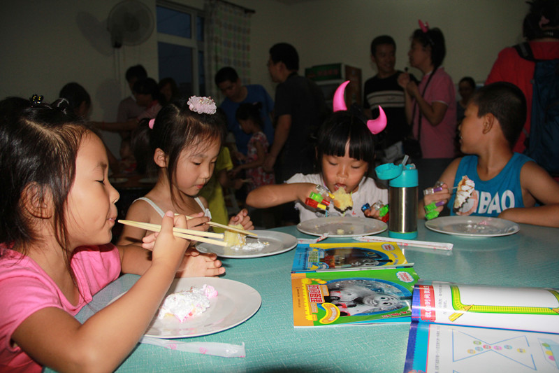 在海边的每一天都安排得满满当当的,上午、下午、晚上分别有不同的活动内容。7月27日晚上是托马斯读书会的时间,另据可靠消息,当天正是我们的晶晶小朋友五岁的生日,读书会之后是生日会,小朋友们有口福了。今年的止锚湾之行较去年多了很多惊喜,晶晶和妈妈是福星啊!