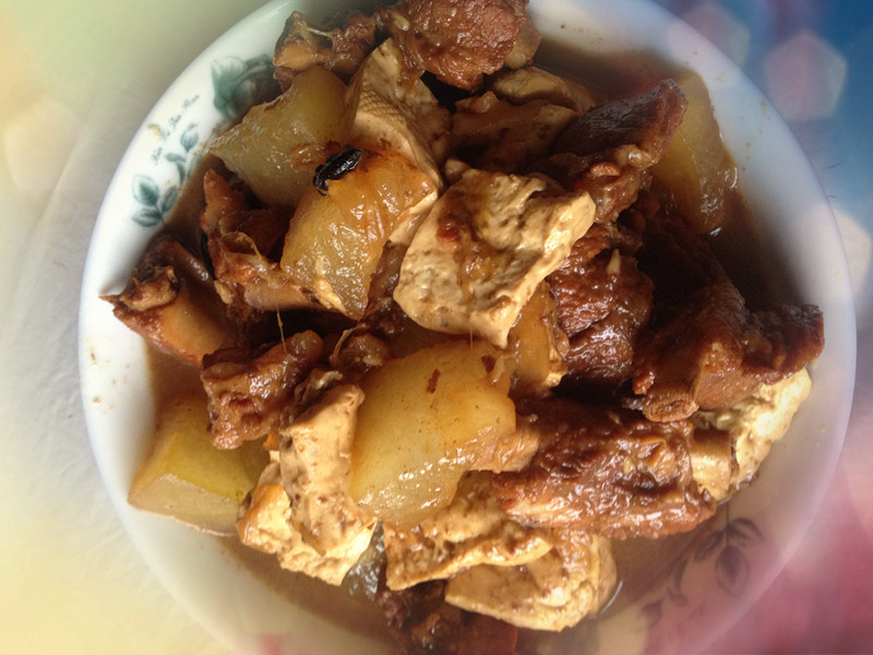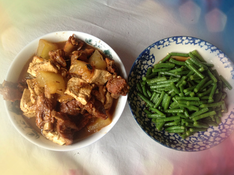 我和儿子都是属于肉食动物,每天的饭菜里基本上不能缺少肉的。在牛很小的时候就开始给牛炖各种的肉食,所以我和儿子都成这个样子了,一个胖妈一个胖儿子。 ![]() 我最喜欢吃的就是小炒肉浇面了,儿子最喜欢吃我炖的红烧排骨了。前几天刚好给家人做了小炒肉,香的家人最后面条都不够吃了,我自己也就吃了一小碗。光顾香了也忘记给我的面条拍照片了,只能展示一小我的小炒肉了。 其实这个小炒肉和红烧排骨步骤都是相同的,只不过一个是需要五花肉,一个是需要小排骨而已。 ![]() 准备一定量的五花肉,一定要五花肉哦。 ![]() 把肉切成大小均匀的小肉片,不要太薄也不能太厚了,完后锅里放油,白糖,大料,等白糖起泡变成土黄色的时候将肉片倒入锅中不停的翻炒,一定要炒的时间相对长一些,这样的肉油会被炒出来,肉就会很香而不腻。期间要放葱姜蒜,料酒,生抽,老抽,继续翻炒几下。 ![]() 拍照的时候被热气熏的好像有雾气一般。 ![]() 翻炒变色之后加水,一定要加热水,千万不能加冷水哦,因为肉现在是高温,加上热水这样肉就不会因为水的温度不够而变的很硬,完后放桂皮和香叶,目的就是提味,大火煮开后小火开始炖。。。。。。 大概需要20分钟到30分钟的样子,期间要去尝尝肉,主要还是瘦肉要能嚼烂就熟了,需要出锅的时候在放盐,不要早放盐,这样肉熟的就会慢,最后放鸡精就好了。 其实小炒肉平时可以多做一些,因为除了吃浇肉面之外,小炒肉还可以炖菜,也同样的味道鲜美。 ![]() 排骨的做法和小炒肉大致相同,今天我做了冬瓜豆腐排骨肉,因为时间紧所以用了高压锅,肉大概用了20分钟就可以吃了,完后放了冬瓜和豆腐再炖了10分钟,等这两个菜完全进去味道后就可以了。依然是出锅再放盐和鸡精。 ![]() ![]() ![]() ![]() ![]() 中午除去排骨,还凉拌了一道绿绿的豇豆菜,就是没有做汤,儿子说了排骨里面不是有汤吗?!挺会提老妈找理由的啊!! ![]() ![]() ![]() 和姥姥开饭喽~~~ 本作品未经作者许可不得转载,转载请征求作者意见。擅自转载使用,将保留追究其法律责任的权利! 评分记录