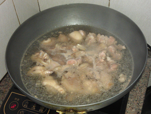 做法: 一、 把猪脚洗净,锅内放入冷水,把猪脚倒下去,待水烧开,再把猪脚捞起来;