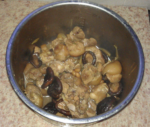 三、 将炒好的猪脚及配料倒进高压锅,我用的是电压力锅,压了有40分钟,以为会太烂,没想到刚好。 等煮好后,我迫不及待抓了块先尝下,味道比我想象中好得多,咸度和甜度都刚刚好,QQ的,肥而不腻,也得了才公的赞许,呵呵,有了认同,我会再接再励的。 本作品未经作者许可不得转载,转载请征求作者意见。擅自转载使用,将保留追究其法律责任的权利! 评分记录