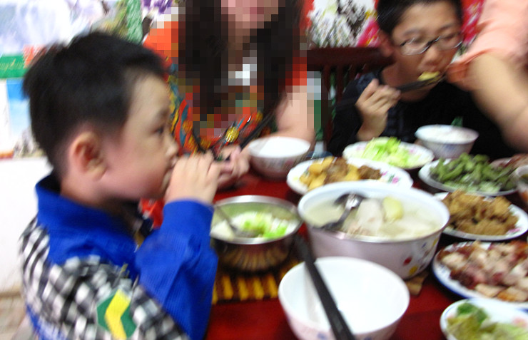 ![]() 这次我们去云南,没想到罐罐对这次在外面吃饭是表现的非常棒,每天早上和晚上都自己去叫四外婆,他要吃饭饭,肚肚饿了。笑死人了。这可是第一次见他在外面这么主动要求要吃饭的,而且每次都是吃得干干净净的,难道真的是云南的米要好吃些吗?还是因为天气的原因,因为那边只有20度左右,和重庆比起来实在是天壤之别呀。 ![]() 顺便也大家看看我们在云南的最后一次晚餐 先来张全部图吧,看看是不是很丰富呀 ![]() 这个一看就字典,萝卜煲排骨汤,第一天到时晚上就吃的这个汤,罐罐可喜欢吃了 ![]() 土豆烧肉,好像是那里的土豆比较好吃,每顿饭都有土豆的,比如说土豆丝什么的,反正是换着花样做的,几个孩子可喜欢吃了,特别是罐罐的哥哥,专门守着土豆吃,而且在最后一天竟然还想叫他老妈带几土豆回去呢,笑死我们了。真要带回去,不把他老妈累死才怪。哈哈 ![]() 这个叫什么‘和尚肉’,有点象腌制品之类的,面上有点花椒面,吃起来还是很香的 ![]() 这个是当地的菌类来炒的一个菜,特别的香,罐爸都在说我,怎么没有买这个回来,我都想了的,这个要30一斤,只有早上的集市才有卖的,而每天早上我们是一早都出去了的,要买这些都只能叫我四婶帮忙买,而一但她帮忙买了,绝对是不收我的钱的,所以,实在是不好意思呀,本来就在那里吃住,还要花人家的钱,所以,想想还是算了。 ![]() 这个面上的是一种野菜,吃起来很清香的,下面是牛肉,牛肉也很烂了,这个是买的,30一份 ![]() 这个就是云南很出名的炸豆腐,到处都能看见在吃这个的,吃时可以沾点调料,味道更好,只是我实在是吃不习惯,尝了一个就没有吃了,她们都吃了很多 还有几个小菜就没有一一拍照了,因为大家已经在开始行动了,晚了就没有了,哈哈 ![]() 看看罐罐,是不是已经是迫不及待的望着了,连颈子都要伸长了,口水都要掉下来了,哈哈 ![]() 哥哥在那边也是悄悄的吃起来了 ![]() 罐罐的碗可是自带的,比一般的小碗要大多了,最少也是当个中碗吧。 罐罐有个特点,不管碗的大,小,反正他就吃一碗,所以,我们就拿个大点的碗,一次给他这么大半碗,再加上菜呀,吃完也比一般的小碗要多多了,呵呵 ![]() 本作品未经作者许可不得转载,转载请征求作者意见。擅自转载使用,将保留追究其法律责任的权利!