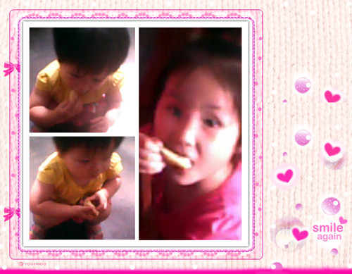把锅加热,放适量的油,油热放上饺子煎一会,在翻过来煎一会,煎至两面金黄,就差不多熟了。看看吧,好香呀。可以开动了, 那些就由婆婆煮了,要等公公和老公回来了才弄呢。所以我和孩子们就先吃上了。 没想到孩子也好这一口呀。都吃的津津有味的。