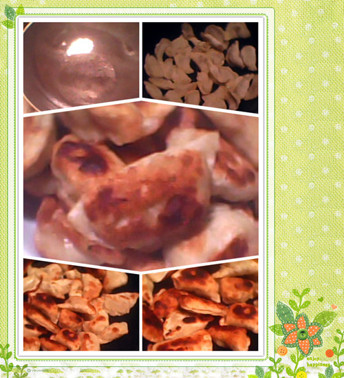 瞅瞅,我包的饺子应该能及格了吧。 好了弄得差不多了,有的皮子楠没有弄好,包出来的饺子我都不敢下水煮,我就捡到一边由煎了,正好是我最爱的。