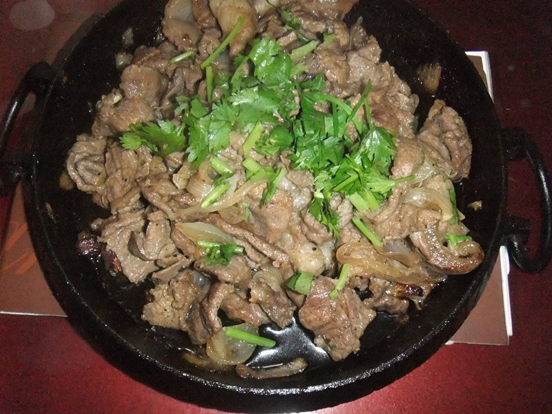 说道爱吃的菜,首先想到的就是铁板牛肉。首先是因为牛肉中含有丰富的营养,1. 牛肉富含蛋白质,氨基酸组成比猪肉更接近人体需要,能提高机体抗病能力,对生长发育及术后,病后调养的人在补充失血、修复组织等方面特别适宜,寒冬食牛肉可以起到暖胃的作用,是该季节的补益佳品; 2. 牛肉有补中义气,滋养脾胃,强健筋骨,化痰息风,止渴止涎之功效,适宜于中气下隐、气短体虚、筋骨酸软、贫血久病及面黄目眩之人食用; 3. 水牛肉能安胎补神,能安中益气、健脾养胃、强筋壮骨。其次牛肉的营养素含量:(每百克) 热量 (125.00千卡) 蛋白质 (19.90克) 脂肪 (4.20克) 碳水化合物 (2.00克) 胆固醇 (84.00毫克) 维生素A (7.00微克) 硫胺素 (0.04毫克) 核黄素 (0.14毫克) 尼克酸 (5.60毫克) 维生素E (0.65毫克) 钙 (23.00毫克) 磷 (168.00毫克) 钾 (216.00毫克) 钠 (84.20毫克) 镁 (20.00毫克) 铁 (3.30毫克) 锌 (4.73毫克) 硒 (6.45微克) 铜 (0.18毫克) 锰 (0.04毫克)