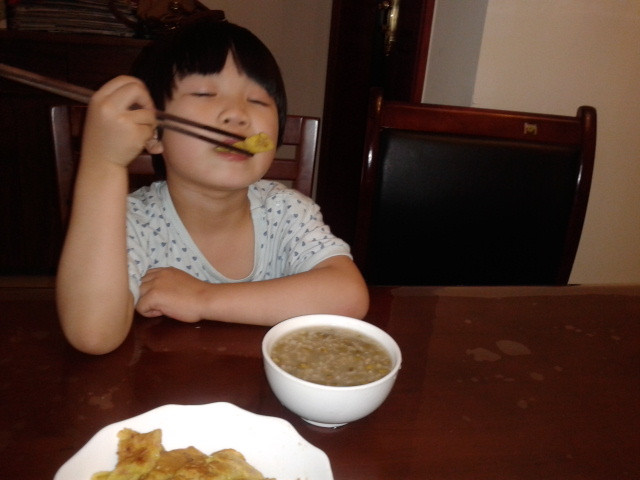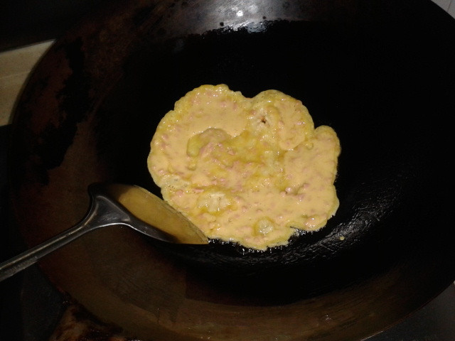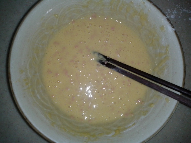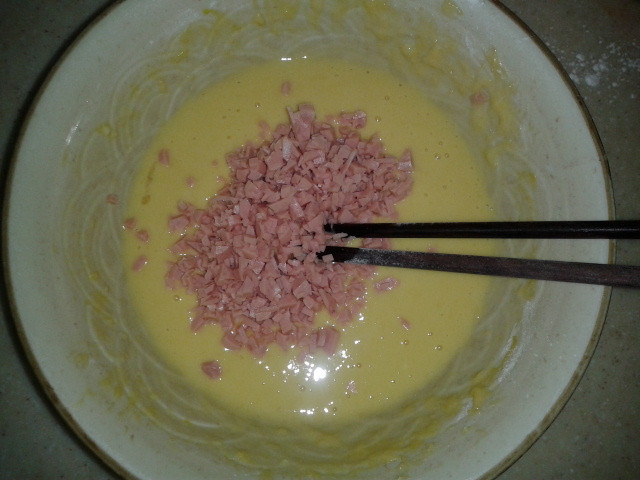 ![]() 说起最爱吃的菜,坨小朋友好像对面食特别钟情,饺子,包子,馒头,面条,面疙瘩,鸡蛋面饼这些都特别喜欢吃。小孩子多吃面食其实好处挺多的,所以我们家虽然不是北方的,但面食还是经常吃的。 而这一款鸡蛋面饼还是在宝宝地带上的坛子里跟一位妈妈学的,做起来简单,而且吃起来特别香,真心的说一声谢谢啊! 第一次做这个鸡蛋饼的时候是在小家伙们午睡起来的时候做的,那天中午吃的稀饭,感觉到了四点钟后肚子有点饿,所以就决定煎个鸡蛋饼来充下饥,就当成是吃点心,同时也可以试下做不做得成功,结果做出来还是挺成功的,被坨小朋友一扫而光。但那次做的时候没拍下照片,接下来第二次做是几天后吃早餐的时候。这下算是把全过程拍下来了。 准备材料:面粉,鸡蛋三个,火腿肠一根(也可以用其他材料代替,看人个口味)。其实要加点香葱,味道会更香,但当时家里没有,就没加上。 ![]() 先把鸡蛋打散。 ![]() 火腿肠切成粒状。 ![]() 面粉加入鸡蛋液中,加入面粉后搅匀。加入的面粉,只要在全部搅匀后用勺子勺起来往下倒的时候是直线就行了,不能太稠也不能太稀。所以要慢慢加面粉。 ![]() 再加入火腿肠和放少许盐调味,因为火腿肠是有咸味的,所以这里的盐可以只加一点点。 ![]() 再搅匀。 ![]() 锅里热油。 ![]() 油温不能太高,不然会烧焦。倒入鸡蛋面粉液后赶紧摊平。煎一会后再翻边煎一下,两边变金黄就行了。 ![]() 出锅!煎熟后再用锅铲在锅里切成片状。 ![]() 在碗稀饭再加一份鸡蛋饼,小家伙吃得欢啊! ![]() ![]() ![]() ![]() 每次吃这样一碟可以很快就搞定的。 完 本作品未经作者许可不得转载,转载请征求作者意见。擅自转载使用,将保留追究其法律责任的权利! 评分记录