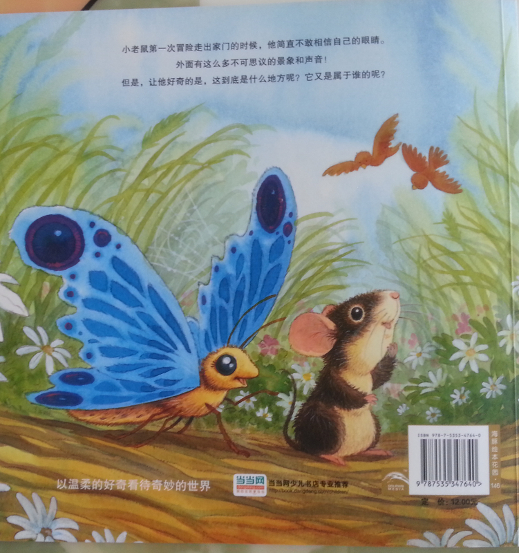 绘本特色:语言优美,画风细腻清新,教会孩子学会感恩和珍惜我们拥有的一切 适合年龄:2到6岁 阅读心得: 刚出生小老鼠用好奇的眼光看世界,在花丛中嗡嗡飞的是什么呢?我是蜜蜂!蜜蜂落在了金黄色的东西上面吃着什么,那是什么呢?蜜蜂说,这是花,我在采花蜜!太阳出来了,照在小老鼠身上暖阳阳的真舒服,这个闪闪发光的大圆盘是什么呢?蜜蜂说,那是太阳,我们大家的太阳!它挂在蓝蓝的天空上!小老鼠兴奋极了,哦,这个世界有蜜蜂,花朵,太阳,天空!这个世界真好!小老鼠又认识了蝴蝶,小鸟还有蜘蛛网,还有蜘蛛网上的小露珠呢!老鼠妈妈告诉小老鼠,这个世界属于蜜蜂,属于蝴蝶,属于小鸟也属于小老鼠,每个生命都可以分享这个美好的世界! 看似简单却很有哲理的一本书,低幼可以拿来当认知类的绘本看,大一点的孩子可以感受和领悟其中的道理!每个生命都可以分享这个美好的世界,同时我们要懂得欣赏和感恩!我们拥有的一切都是那么美好,那么珍贵!美就在我们的身边,青青的绿草,蓝蓝的天,新鲜的空气,无一不是大自然的恩赐,我们享受也要回报! 画风细腻,语言优美,像一首散文诗,字里行间洋溢着温馨和爱! ![]() ![]() 本作品未经作者许可不得转载,转载请征求作者意见。擅自转载使用,将保留追究其法律责任的权利!