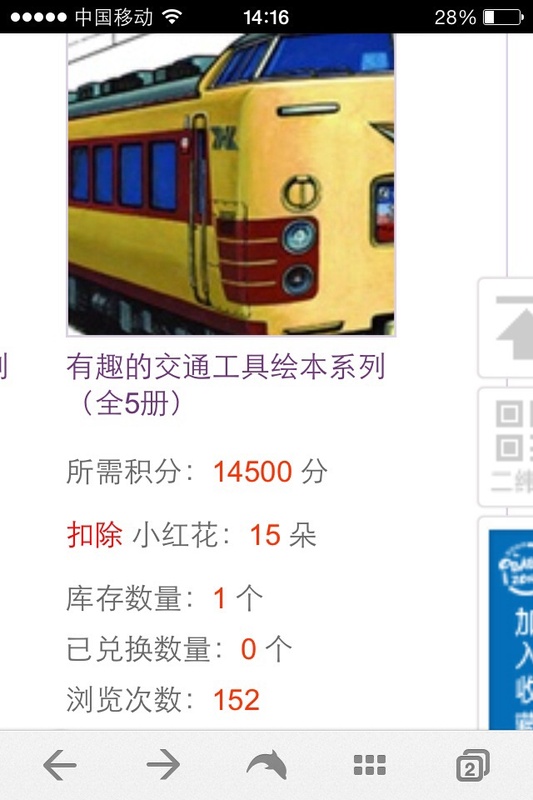 ![]() ![]() 我的16099积分在换取了《交通工具》绘本之后只剩下99积分了,看着辛苦攒下的积分就这样没了,我变成了一个不折不扣的穷光蛋,心里还是有些小失落的。 ![]() 记得当我的积分上1w的时候,可把我高兴坏了。我还发表了一篇文章来纪念我积分突破1w,因为当时想换《弟子规》所以我不断的努力着,那时我觉得距离我的目标越来越近了。 ![]() 自从上次兑换完《冬冬,等一下》以后,我就有些小小的后悔。那次是我第一次换书,什么经验都没有,还是可欣妈妈教会我如何兑换的。后来我看到了《弟子规》我就下定决心要把积分攒起来。本来我为了《弟子规》在很努力的攒积分,觉得《弟子规》我势在必得。可就在前两天我改变了主意,为了《交通工具》绘本。《弟子规》是人人都说好的,可我看了介绍说是适合3到6岁宝宝阅读。我家嘟嘟才刚出生不久,书留那么长的时间就说不定会被谁给拿走了。而《交通工具》的绘本,我觉得在宝宝一岁左右我就可以让宝宝看了,上面各式各样的交通工具变成可爱的形式,我想一定会提起宝宝的兴趣的。 ![]() ![]() 为了《交通工具》的绘本我忍痛放弃了一直想要的《弟子规》,心里也很不是滋味。《弟子规》马上要被兑换完了,我不知道以后地带还会不会有,我的积分实在是太少了,没办法两本都换。在一再的犹豫之下,还是选择了《交通工具》绘本。 ![]() 我现在虽然成了穷光蛋,但我依然会很努力的攒积分,我希望我还有机会可以换《弟子规》。 本作品未经作者许可不得转载,转载请征求作者意见。擅自转载使用,将保留追究其法律责任的权利!
