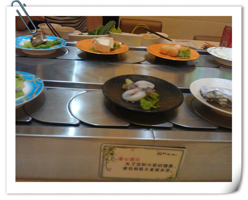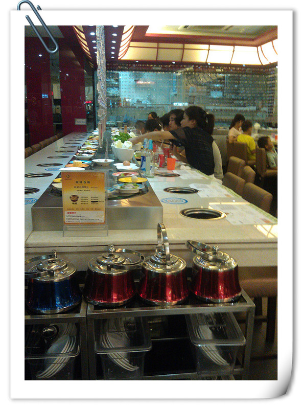 上个星期五的时候,同事说请我和点点去吃自助小火锅了,点点很开心,我们还没有吃过自助小火锅呢,可是我觉得点点去吃有点不合算啊,点点又吃不下多少东西,还要那么多钱,真是不合算,但是点点很想去,我们就一起去吧。 等我们到达海峡情缘的时候,阿姨和哥哥已经在了,我和点点坐在一起,阿姨和哥哥坐在一起,但是哥哥一定要和点点坐在一起,然后我和同事坐在两边了,我们的座位是长条形的,因为是自助的么,所以我们只能坐在一条上面,这样火锅的菜就可以转过来了,这里的火锅菜是循环转动的,很不错。