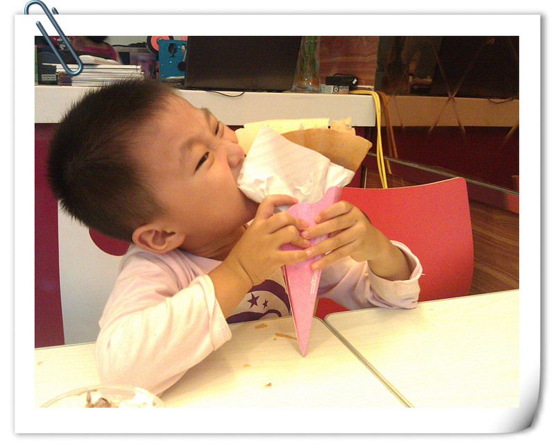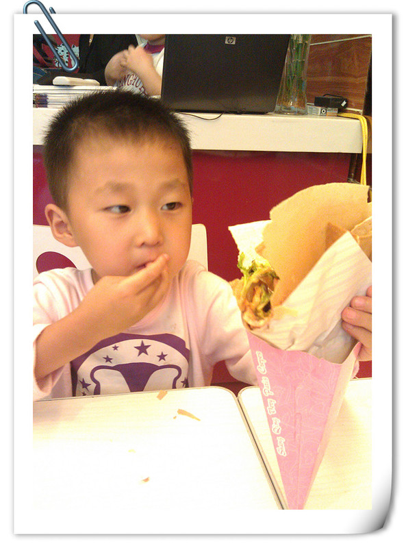 点点吃着吃着,就要给妈妈吃点,让妈妈也尝尝味道,我一吃,味道还真不错外皮脆脆的,里面的蔬菜和肉都很嫩,很好吃。点点吃了好长时间才吃完的,吃完回家都不要吃晚饭了。点点说下次还要来吃呢。