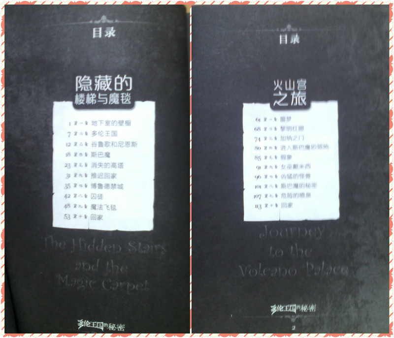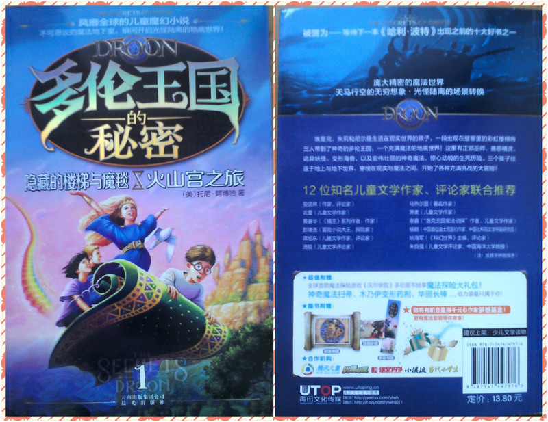 如果说《哈利·波特》《纳尼亚传奇》是更适合初中生的长篇大作,那《多伦王国的秘密》就是真正为小学生量身打造的中短篇佳作。本套书每本书都包含两个既相关但又相对独立的故事,孩子们看任何一本都不会有看不懂的感觉。在第一本中,“隐藏的楼梯与魔毯”讲诉了三个孩子通过地下室中隐藏的楼梯来到多伦王国,从斯巴魔手中成功救出吉雅公主,魔毯将他们送回了自己的世界。而在第二个故事“火山宫之旅”中,三个人在梦境的指引下,再次来到多伦王国,他们要帮助吉雅公主找到斯巴魔秘密基地的大门---加纳之门,并前往那个危险的地方取回公主被抢走的“黎明红眼”宝石。在成功完成任务后,多伦的秘密依然在吸引着他们期待下一次的旅行。