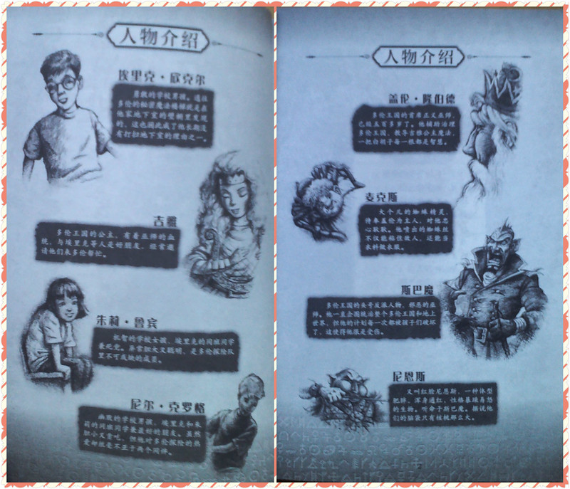 翻开书,首先迎接我们的是多伦王国的秘密地图和大事年表,看不见的城市、火山宫殿、消失之岛以及海底城堡……,一种不同寻常的气氛开始酝酿,巨人族、蛇族、兽族、斯巴魔,孩子已经有点跃跃越试想进入这个神奇的国度了。那就一起来认识一下主人公吧!埃里克、朱莉和尼尔是生活在现实世界的三个好朋友,他们勇敢、机智、幽默,一架神奇的彩虹楼梯把三人带到了多伦王国----一个充满魔法的地下世界,更为神奇的是,即使他们在多伦王国待了很长时间,现实世界才过去了几秒。埃里克三人帮助吉雅公主和正义巫师盖伦,承担起了对抗邪恶巫师斯巴魔的责任。当多伦王国的谜团一个个的揭开,孩子们也经历着一场场的的生死考验。