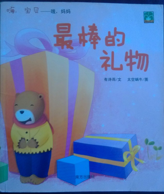 参与人员:妈妈和宝宝 阅读绘本:《嗨,宝贝——哦,妈妈》系列之《最棒的礼物》 绘本特色:每一页的文字都是以“嗨,宝贝”开头,用妈妈跟小熊说话的方式,说出了小熊与它的小伙伴们的故事。绘画和文字都让人感觉温馨。 适读年龄:2~6