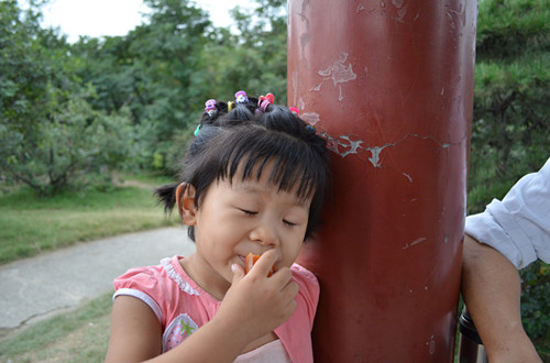 来到一处凉亭,休息一会吧。吃着小枣的幸福模样,羡煞旁人呀。