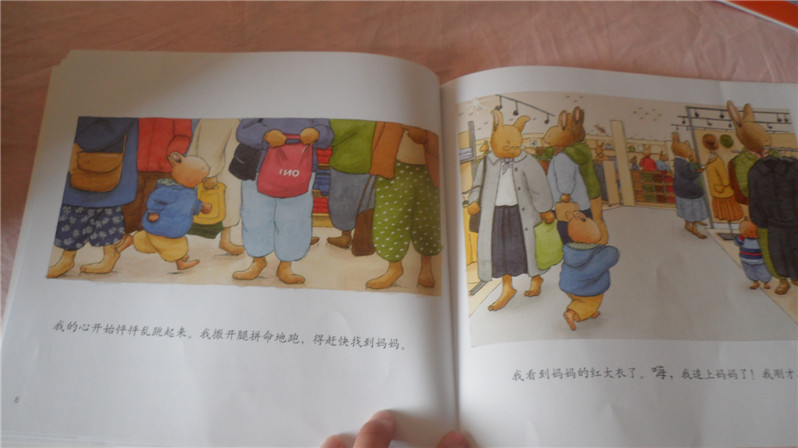 绘本特色:小汤姆和妈妈逛商场却找不到妈妈了,怎么办呢?最后通过收银员阿姨找到商场广播室,然后找到妈妈啦。