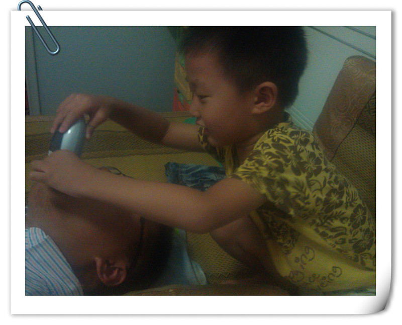 爸爸让点点吧剃须刀给他,点点说:“爸爸,今天我来帮你刮胡子吧。”起先点点爸爸还不愿意,要夺过剃须刀,自己去刮胡子,点点不肯给爸爸,两人僵持着。我说:“点爸,让点点表现一下呗,看看他刮得干净不干净?”点点说:“让我也试一试吧,以后我长大了也要刮胡子的。”居然点点是想拿爸爸做实验品,真是了不得啊。然后爸爸答应了:“刮不干净下次不让你刮哦。”点点说:“好的。”
