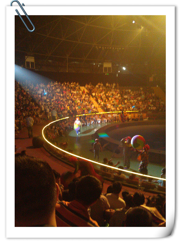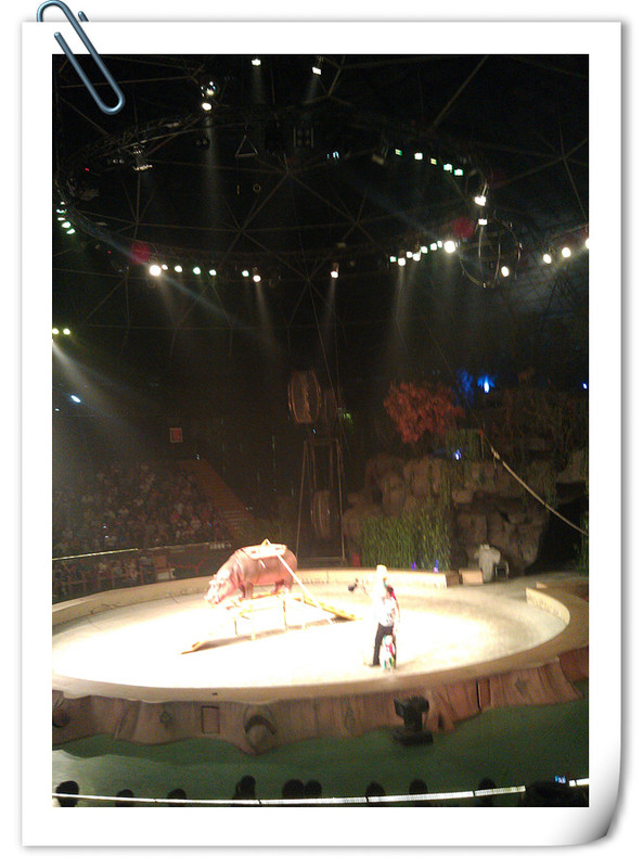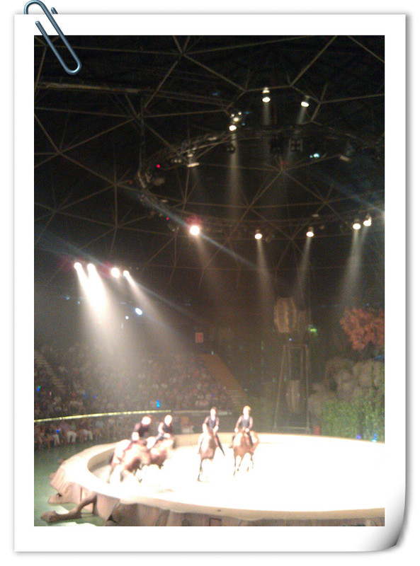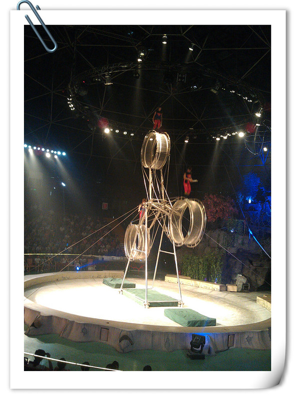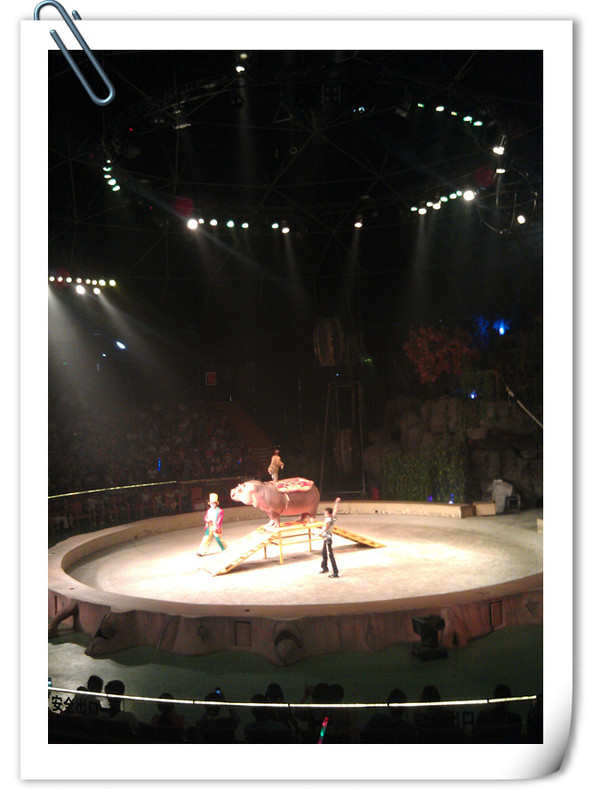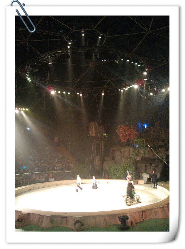 中午十二点二十分有大马戏,我们早早地吃完午饭,就去看大马戏的地方等待了,很容易我们就找到了正中间的位置,点点很期待,坐在座位上一直看着场上的表演者有没有出来了。 ![]()