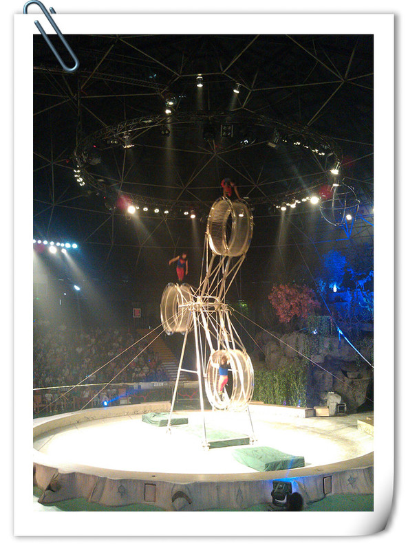 点点才强撑着不睡觉看节目了,接着又有几个好看的节目,尤其是小熊骑自行车很好玩,点点都激动的站起来了,飞轮的表演很惊险,我们看的时候都为演员捏一把汗,看完节目点点还不肯走,说是没有看够。 ![]()