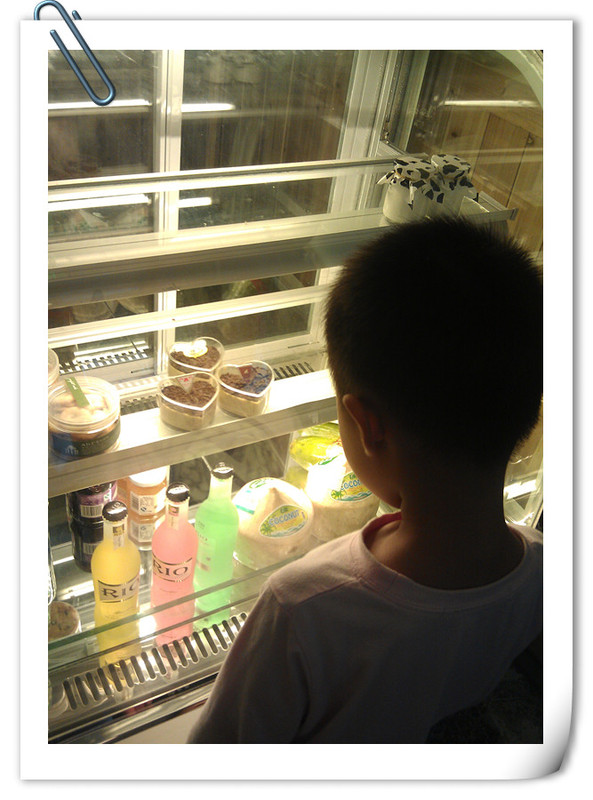 店内的装修还算典雅,柜台不大,陈列的甜点也不是很多,五颜六色的,看起来很有食欲,店里的人不多,估计肯定很贵的,然后我们就去柜台上选喜欢的东西,点点选了一个牛奶布丁,我选了丝袜奶茶,点点爸爸点了一个小蛋糕。点点看见五颜六色的瓶装饮料,就要喝那个饮料,营业员说小朋友不能喝,因为那是鸡尾酒,所以就没有点。
