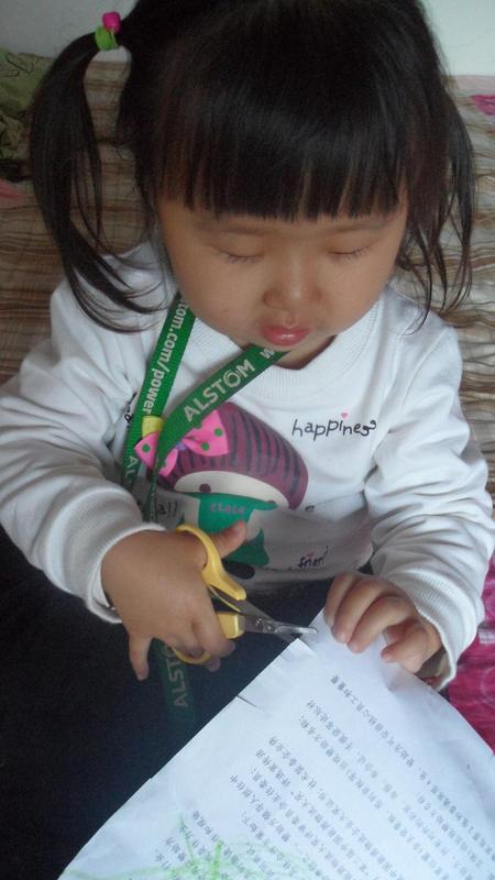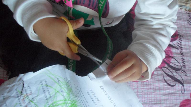 使用剪刀锻炼孩子的手指灵活能力,不过千万注意,要小心点