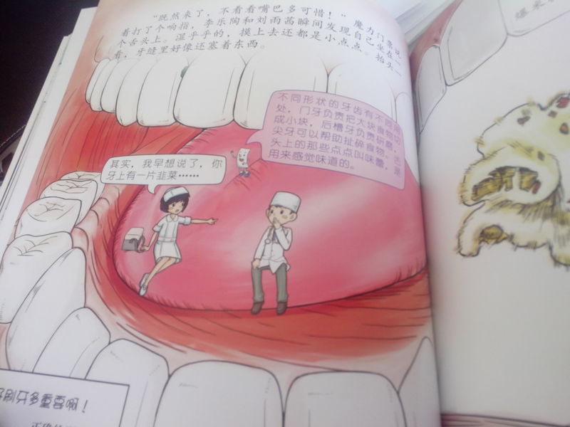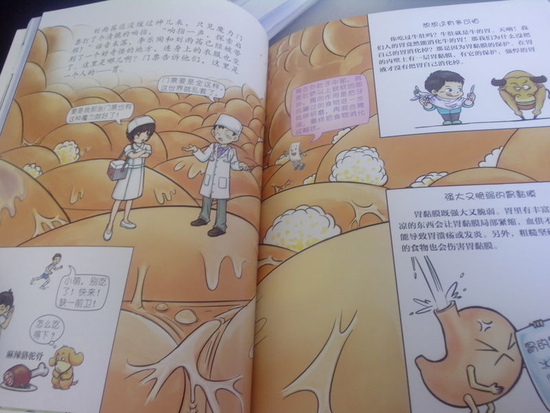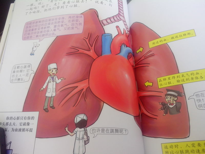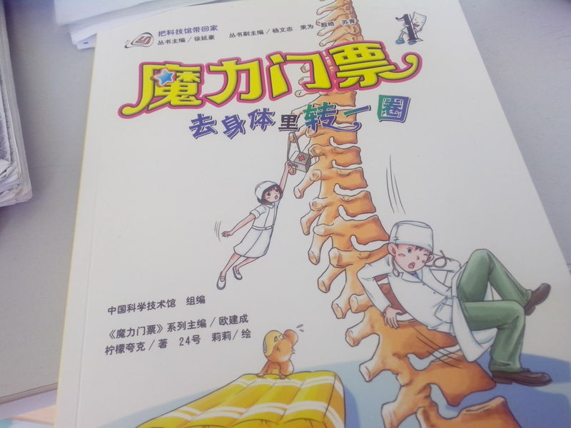 ![]() 收到魔力门票之〈去身体里转一圈〉已经很长时间了,但最近有点小忙,一直没有时间上来写试读报告,其实果读这本书已经好长时间了,我本以为这本书的文字有很多,而且没有注音,她会不感兴趣,但小家伙还真行,自己一个人把这本书看完了,问她书里讲了什么,她总结了一下说:“就是去人的身体里面转了一圈”,简单扼要,看来是真的看懂了,从此也看出小家伙认识的字已经不少啦,能独立看完一整本书了。 好了,言归正传,现在赶紧来看看这本书的内容吧! 《魔力门票》系列是以中国科技馆科学乐园为故事发源地而创作的,在书中,作者把门票拟人化了,魔力门票带着它的好朋友李乐陶、刘雨茜和赵小萌进行奇妙的穿越旅行,了解了人体的基本构造,让孩子们在玩乐中学到了科学文化知识、了解了人体构造及各项器官的功能,把本来枯燥的知识变成了一种带着乐趣的旅行。 故事是从孩子们参加科技馆开始的,参加完科技馆后,小主人公李乐陶的科技馆门票 就变成了一张魔力门票,会说话、能让玩具活起来,重要的是它带着李乐陶和小伙伴去人的身体里走了一圈,首先它带小朋友们到了人的胃部,让孩子们知道了胃的作用是把牙齿嚼过的食物进一步捣碎研磨,再混合胃液,最终把食物消化成糊状,胃的容量是有限的,如果吃得太多,会很难受!教会了孩子吃什么食物能够保护自己的胃。 接下来的旅程是肝脏,让孩子们知道了肝脏是重要的解毒器官,知道了发怒生气会伤肝,让孩子们之间要友好相处,不要动怒,动怒既伤害了同学们之间的感情,还会伤及自己的身体。 接下来就到了人的肠部,孩子们知道了便便是怎么形成的,大肠小肠各自的作用,想要身体健康,就需要保持肠道健康通畅。然后认识了人体的发动机--心脏,人的心脏只有拳头那么大,但却象一个水泵,为血液循环提供动力,运动时人需要更多的氧气,所以心脏跳动速度会加快。 后来又去了人的大脑,虽然这是一团皱皱巴巴、灰不溜秋的东西,但却是人体最神奇重要的器官,大脑的左半球指挥人的右边身体,主要负责逻辑思维,右半球支配左边身体,主要负责形象思维,而且人的大脑中80%都是水,没有这些水,大脑也就无法正常工作,所以我们平时说的人的脑子进水了,并不是骂人哦,是说了个事实!还知道了海豚的大脑是非常发达的,和成年人脑的重要差 不多,所以海豚是非常聪明的一种动物! 接下来是人的骨骼、舌头和肺,让孩子们了解了人的整个的身体构造,李乐陶通过自己学到的知识,告诫爸爸不要抽烟,吸烟对肺有坏处,爸爸也欣然接受。 整本书文字不少,还配以形象的图片进行解释,让人一目了然,容易理解,比较适合孩子们阅读,看看 这些形象的图片吧。看看这些器官你都认识吗? ![]() ![]() ![]() ![]() ![]() ![]() ![]() ![]() ![]()