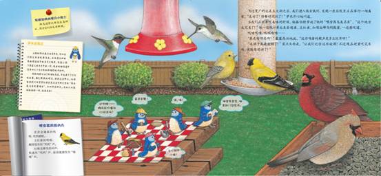 更多试读试用请点击:http://www.babyzone.cn/shiyong/ 首先鸣谢北京梦溪今典文化传播有限公司对此次活动的大力支持与赞助! 试读名额:21名 (随机发送一本)带宝宝阅读照更佳 读者定位: 年龄: 3-6岁宝宝的鸟类认知启蒙书,7—10岁儿童的自然科普绘本。 购买链接: http://product.dangdang.com/23298370.html ![]() ![]() (里面包含《美洲寻歌之旅》 《狂野海岸历险记》和《寻找鸟类之最》三本分册。) 分册简介: 这是一套想象力丰富的绘本故事书,也是一套幽默风趣的儿童科普书。跟随着蓝色乐团的五只小蓝鸟,小朋友们可以穿越美洲、巡游海岸、环游世界,体验惊险、刺激、有趣的观鸟之旅! 《美洲寻歌之旅》 蓝色乐团为了寻找一首理想的歌,穿越美洲寻找灵感。在阿拉斯加的悬崖峭壁上,他们遇到了白头海雕;在夏威夷温暖的海面上,他们看到了信天翁;在落基山,他们遇到了美洲雕鸮;在古老的南方庄园,他们遇到了歌喉婉转的小嘲鸫…… 但是没有一种歌声能完全打动他们,眼看蓝色乐团的演唱会就要开始了,最终他们会唱一首什么歌呢? 《狂野海岸历险记》 这一次,蓝色乐团要追随世界最著名的观鸟者罗杰•托里•彼得森的经典观鸟路线去观察海岸线上的鸟类。尤诺希望这次能看到他最喜欢的潜鸟。 五只小蓝鸟从纽芬兰岛出发,沿着北美海岸线行进了4.8万公里。他们在佛罗里达的“草之河”看到了捕鱼能手大蓝鹭;在“埃弗里艾兰的飞翔花园”看到了美丽优雅的雪鹭;在普里比诺夫群岛上,看到了水下游泳健将厚嘴崖海鸦……这些鸟虽然各有所长,但是并不能取代潜鸟在尤诺心目中的地位。马上就要飞回家了,尤诺还能看到潜鸟吗? 《寻找鸟类之最》 蓝色乐团的成员萨米,是个运动健将。当她看到关于“鸟类极限运动”的召集令时,就再也坐不住了。于是在萨米的请求下,大家决定环游世界寻找“鸟类之最”。 这次他们在阿拉斯加看到了长途飞行冠军北极燕鸥,在南极见到了潜水最深的帝企鹅,在喜马拉雅山见到了飞得最高的斑头雁…… 萨米很羡慕这些极限运动冠军,但自己似乎在这些项目上都不擅长,什么运动项目才能让萨米荣登世界纪录呢? 分册书评: 《美洲寻歌之旅》: 《蓝色乐团观鸟之旅》的五只鸟类成员,为了找到一首完美的歌曲,在美国独立纪念日那天在白宫上演唱,决定穿越美洲去观鸟。 五只鸟精彩有趣的对白;写在黄色便利贴上的实用观鸟小贴士;观鸟指南信息;以及每个成员的日记体观鸟笔记。精彩的细节以及多种的表达方式随处可见。 蓝色乐团的成员们踩着各自的冲浪板在夏威夷冲浪时,看到了一只信天翁。在旧金山海湾钓鱼时看到了环嘴鸥,踩着高跷跋涉过奥克弗诺基沼泽时看到了一只粉红琵鹭。很多对白幽默诙谐,例如:“这些蜂——蜂鸟能听懂我们说话吗?” 尤诺,蓝色乐团成员的男孩子,他做出推断,“我猜动听的歌曲和绚丽的羽毛通常会吸引异性”。 萨米在后面的日记中,纠正了他的偏见,“绿头鸭爸爸头上的羽毛是鲜亮的绿色,但它不需要照顾宝宝,因此也就不用伪装自己。” 叙述风格充满了顽皮嬉闹,同时鸟类和观鸟信息又很翔实,这样的一本书有可能使读成长为一名小小的鸟类观察家。 ——学校实验室期刊(2011年4月刊) 《蓝色乐团观鸟之旅》这套书,将会使孩子们对鸟类漠不关心的态度完全改观。当他们看到宾、露露、尤诺、埃格伯特和萨米这几个可爱的蓝色知更鸟家族的兄弟姐妹的有趣的冒险经历后。 在《蓝色乐团观鸟之旅》的第一本《美洲寻歌之旅》中,由蓝鸟家族组成的蓝色乐团从大西洋岸飞到到太平洋岸,为了寻找一首新歌以便在即将到来的现场演唱会上表演。在阿拉斯加,一只威武的白头海雕用敏锐的目光盯着他们,使他们油然而生敬畏。不过它粗哑没有乐感的“咔咔咔”声不适合他们演奏。喜欢模仿的小嘲鸫的声音也不适合他们。“我们不要模仿一个只会学舌的鸟。”宾说道。 整个旅行过程中,这5只胖乎乎的小鸟,每个成员的对话都带有各自鲜明的性格特征,同时在各自的笔记本纪录了他们天才的观察结果。“绿头鸭妈妈特别注意保护宝宝。”萨米在笔记本中描写查尔斯河上的水鸟时说,“鸭妈妈全身几乎都是棕色的,所以它和宝宝能够很轻易地在地面上隐蔽自己。 另外,在每一页的“观鸟指南”,真实、客观、详尽地描述了每一种鸟类的各种知识知识,加上优美漂亮的绘画风格,使小读者们对旅途中的鸟有更全面的认识。 最后一站乐团看到了美国人民最喜欢的鸟——旅鸫,并且上演了一场精彩的演唱会。 孩子们一定会渴望看到“蓝色乐团”的第二次“演唱”——本系列第二部《狂野海岸历险记》,将带着孩子们沿着罗杰•托里•彼得森曾经的观鸟路线一路前行。 ——奥杜邦杂志(2011年5月刊) 《狂野海岸历险记》: 《蓝色乐团观鸟之旅》系列之《狂野海岸历险记》是一本想象力丰富的绘本故事书。书中的主人公宾、露露、尤诺、埃格伯特和萨米,是五只滑稽搞笑的蓝色知更鸟。他们沿着著名的观鸟者罗杰•托里•彼得森的足迹,从加拿大的纽芬兰岛出发,途经墨西哥湾,穿越太平洋,到达阿拉斯加。 在旅途中,他们看到了雪鹭、大蓝鹭、笑鸥、粉红燕鸥、北极海鹦、美洲蛎鹬、华丽军舰鸟、鹬科鸟类、加州鸬鹚、褐鹈鹕、鹪鹩、厚嘴崖海鸦以及普通潜鸟。 蓝色乐团对它们旅途中的见闻做了有趣的对话,并寄送当