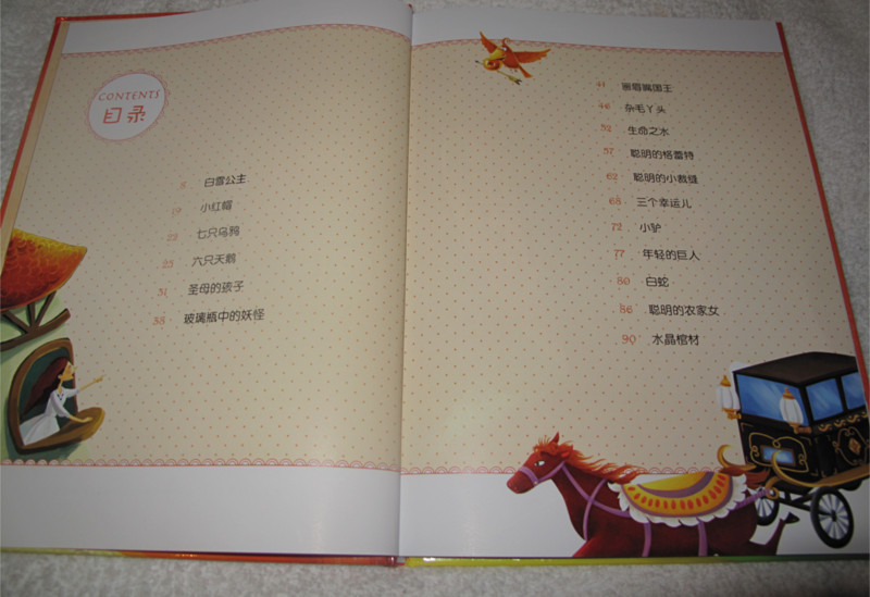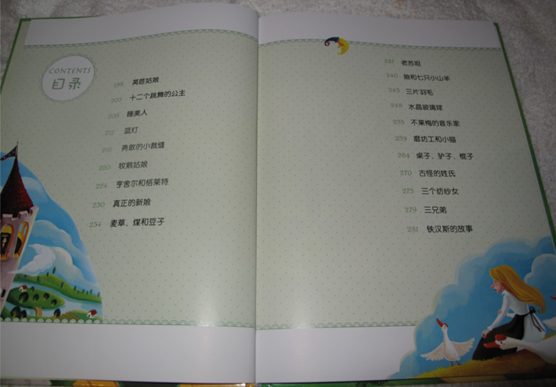 ![]() 接着来晒第3天抢到的《最美格林童话集》,第2天和第4天的因为在医院守外公去了,没有机会去参加秒杀。应该说从第2天开始就已经算是在秒杀了,因为知道这个活动的越来越多了,那就只能是秒杀了。还好,我家的电脑还比较给力,偶尔还是能抢到滴。呵呵 ![]() 这套《最美格林童话集》是昨天中午到的,因为我在医院的,还是叫楼下水果店的帮忙收着的,下午回来才去取的。拿到就赶紧特别的沉。回家打开一看,竟然是很大一本的,里面有3本,还是精装版的呢 赶紧来看看是那几本吧 ![]() 《最美格林童话集》第一集,封面是鲜艳的橘红色,而且封面上的图案都有凹凸感的 ![]() 第一页就是目录,有17个小故事呢,同样有几个小故事 ![]() 第一个就是人人皆知的(白雪公主)的故事 ![]() 其实白雪公主的故事应该是很多人都知道的。有个嫉妒心很强的王后,不能忍受别人比她漂亮,当她知道白雪公主比她漂亮,就想方设法的想要加害白雪公主,白雪公主只好逃到了森林里面,遇见了可爱的7个小矮人,就和7个小矮人一起生活,可还是被王后发现了,用了各种各样的办法,最后吃到了毒苹果才昏迷了,直到遇见了王子。从来,美丽的白雪公主就和王子快乐的生活在一起了。 ![]() 《最美格林童话》第二集,封面是天蓝色为底色,同样,图案都是凹凸的,很有手感的 ![]() 这本忘记拍目录了,一共是16个小故事,这本好像有很多故事我都没看过,正好可以和孩子慢慢看了。 《灰姑娘》,这个小故事也是很经典的一个故事 ![]() 里面的彩图也很漂亮的,文字都配有拼音注解的 ![]() ![]() 《最美格林童话》第3集,这本的封面是绿色为底色 ![]() 目录,有20个小故事呢 ![]() 这个故事叫莴苣姑娘;莴苣姑娘是天底下最美的女孩,巫师把她关在森林里一座没有楼梯,也没有门的高塔里,只有一个小窗户,而巫师想进去,就叫莴苣姑娘把头发放下来,巫师就顺着头发爬上塔去。 ![]() 而一位经过的王子被莴苣姑娘的歌声打动了,于是他也学着巫师那样叫莴苣姑娘把头发放下来,王子便顺着头发爬上塔去了,可后来因为被巫师发现了,王子和莴苣姑娘经常了很多磨难,最后还是幸福的在一起来了。 其实莴苣姑娘的长头发这张图片是很有印象的,记忆深刻的也就是这个画面 ![]() 这是3本一套的精装本,原价格是88一套,一折秒杀抢到,8.8加5元运费,一共是13.8,绝对是物有超值呀。而且后来的都不是很好抢了,真的是秒杀才能抢到的,相信很多妈妈都有这个体会吧。 本作品未经作者许可不得转载,转载请征求作者意见。擅自转载使用,将保留追究其法律责任的权利!