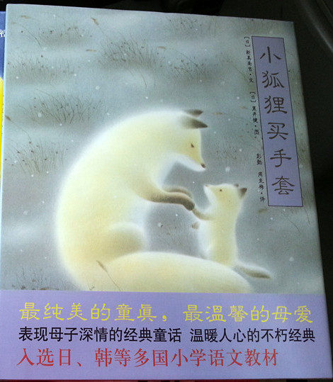 参与人员: 妈妈和宝宝 阅读绘本: 《小狐狸买手套》 绘本特色: 至纯至美的温馨故事。故事温馨,温情,画面纯美,空灵,梦幻。 适读年龄: 2+ 阅读心得: 这本《小狐狸买手套》真是期待已久了,一直找不到合适的价格。上次苏宁198-80,我就毫不犹豫地收入囊中。昨天跟闺女一起看《阿秋和阿狐》,闺女又兴奋异常,我就卖关子说,咱家还有另外一本小阿狐的书,更好看,结果如我所料,小家伙急得像热锅上的蚂蚁,吊足了胃口,我才把这本《小狐狸买手套》讲给闺女听。听了一遍,闺女就能绘声绘色地跟我演绎里面的主要情节了,她对一只手变成了小孩手这个情节特别感兴趣。还把故事的名字改成《小阿狐买手套》。 新美南吉的作品都很美,但是很多都结尾凄凉,像《去年的树》《狐狸阿权》,唯独这本是我最喜欢的结局。故事的内容大家肯定都知道了,小狐狸在大雪纷飞的冬季,出洞去玩耍,总是冻僵了手,狐狸妈妈决定给小狐狸买一副手套。到了镇上,越接近万家灯火,狐狸妈妈越不敢前行,因为她想起了曾经差点被人抓住的惨痛经历,只能让小狐狸一个人去买手套了。说来很神奇,狐狸妈妈把小狐狸的一只小手变成了小孩的手,千叮咛万嘱咐,买东西的时候,只能将门开个小缝,而且只能伸那只小孩的手。小狐狸第一次到镇上,一切都那么新奇。慌乱之中伸错了手,好心的店主人没有揭穿小狐狸,并卖给它一副手套。小狐狸回来的路上,路过一户人家,听到里面的妈妈正在哄宝宝睡觉,就跟小狐狸的妈妈哄自己睡觉一样,屋里的妈妈还让宝宝快点睡,跟山里的小狐狸宝宝比比谁睡的快。小狐狸真心感觉人类其实没妈妈说的那么可怕! 故事美,画面也那么美,简单的画面,浅淡的颜色,光与影的呼应,描绘了故事的空灵和雪国的梦幻色彩,只有这样的画面才能配得上这么纯美的故事。狐狸母子的温情,好心的店主人,隔窗听见的摇篮曲,无一不是暖暖的,温暖了白雪茫茫的冬季! 我发现我特别喜欢介绍关于冬天的绘本给孩子,那是我对白雪茫茫北国的最深最切的怀念和眷恋。 ![]()