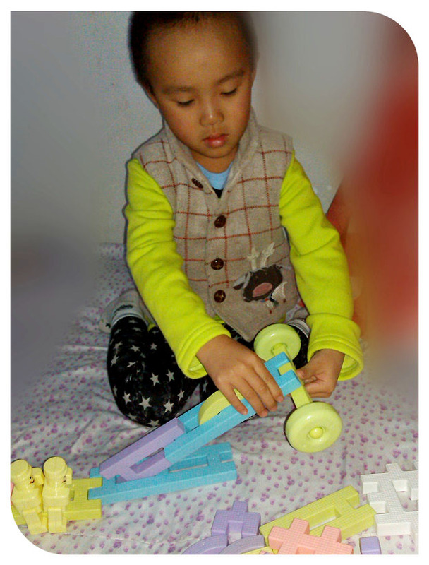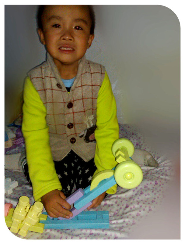 谦说这是他的新式车,速度超级快。 反正就是随便拼吧,只要小家伙觉得有意思就成了。