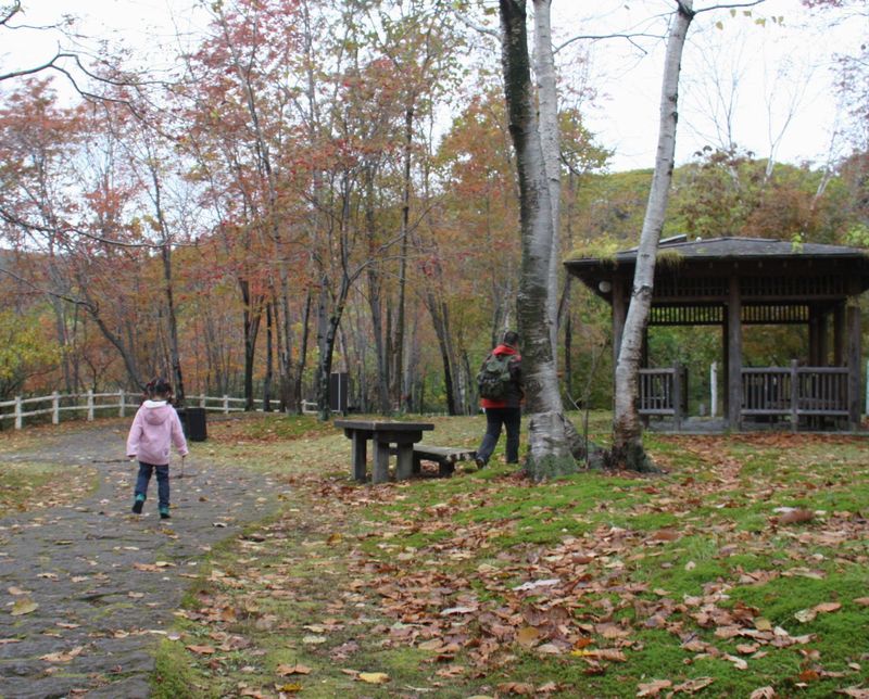 地狱谷周围的则是支笏洞爷国立公园的登别原始森林。此时已是北海道的深秋,叶子红的黄的正灿烂,地狱谷和人间秋景交融在一起,实在是一大特色,绝对不虚此行。