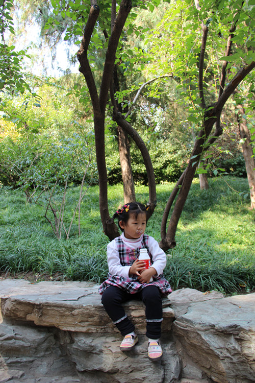 先爬上万寿山,给宝宝拍了照。幼儿园让小朋友们在十一放假期间去做一些运动,并拍照后拿到幼儿园,跑步、跳绳我们觉得也没什么意思,于是就想着还是爬山照吧。宝宝的作业搞定了,那么我们的下一个目标就是大黄鸭了。