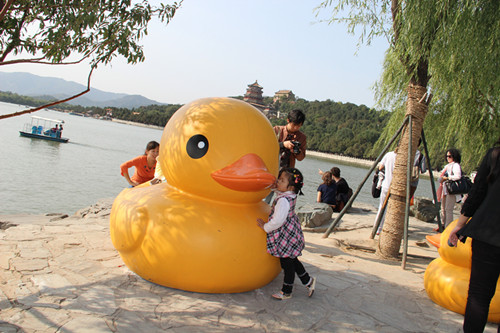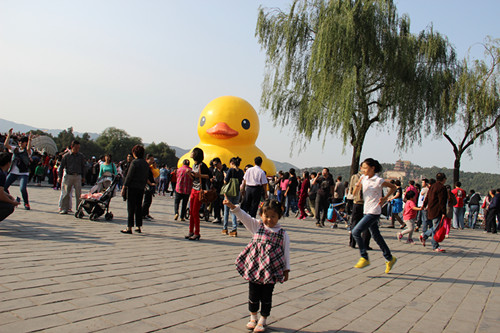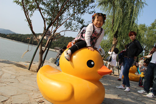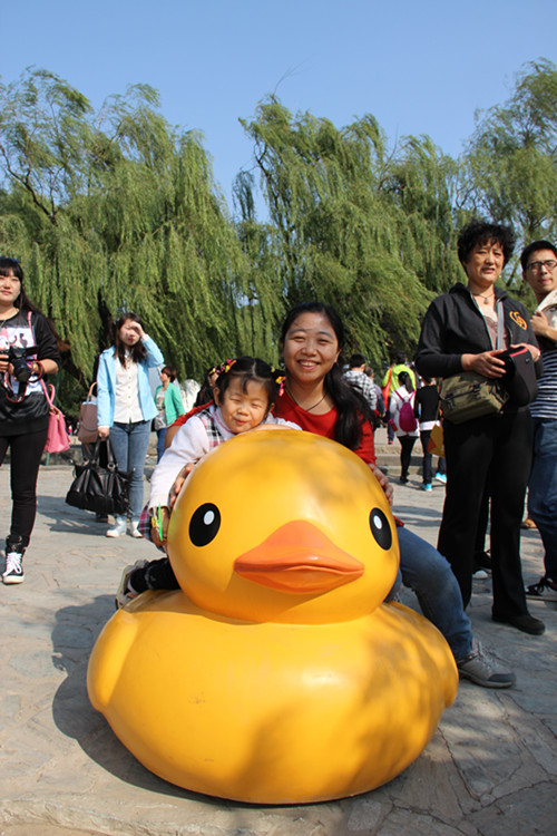 10月7日,我和母亲、老公带着宝宝来到颐和园,一是为了给宝宝拍一张作业,二是为了看那只有名的大黄鸭。