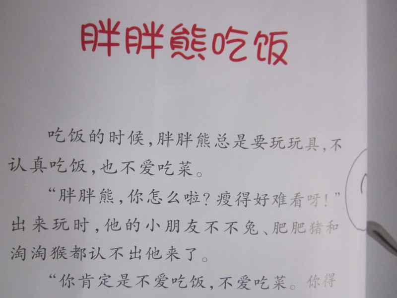 阅读日期:11月1日 参与人员:妈妈和宝宝 适读年龄:2-8岁 阅读心得: 胖胖熊吃饭,虽然名为胖胖熊,但是由于他不好好吃饭,都瘦的很难看了,出去玩儿的时候,好朋友们都快认不出他来了,大家一看就知道,他肯定是不好好吃饭,爱挑食,不爱吃蔬菜,所以才会这样的,大家在一起玩儿,小猴子做了个翻跟头的动作,惹得大家都很开心的哈哈大笑,胖胖熊觉得好玩儿,也要做,结果他没有力气,一下子就自己栽了个跟头,大家都笑他,他也知道,自己是由于挑食身体才没有力气的,所以就下定决心,以后要好好的吃饭,晚上吃饭的时候,胖胖熊吃了一大碗的米饭,还吃了很多青菜和肉,还喝了一大碗的排骨汤,哈哈,爸爸妈妈看着也很高兴,夸他是个好宝宝呢。 很简单的一个故事,通过这些小动物们的故事告诉小朋友,挑食的坏处,吃饭的时候就要好好吃,不要玩玩具,不要挑食,这样才会身体健康,身体强壮。 本作品未经作者许可不得转载,转载请征求作者意见。擅自转载使用,将保留追究其法律责任的权利! 个性签名