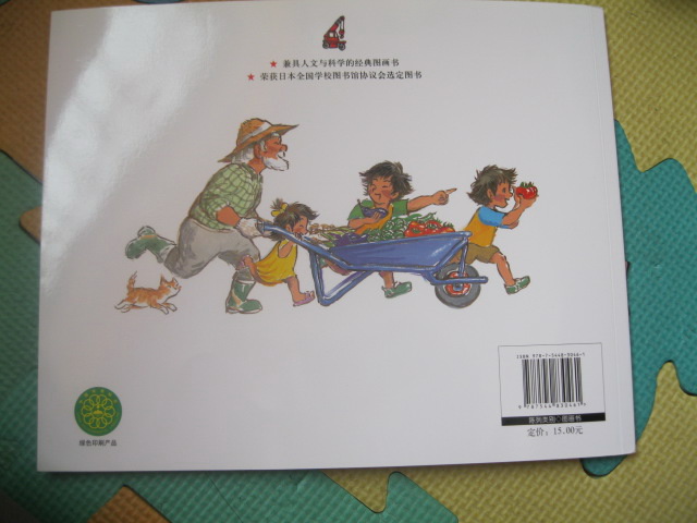 绘本的魅力不仅仅在于绘本本身,画面所传达的故事和故事之外的故事,也是作者功力的体现,我们在看“一起盖房子”过程的同时,又读到了一个农民爷爷种菜的故事,盖房子的时候,农民爷爷在那里忙碌着,房子盖好了,在封面上作者绘了一幅图:爷爷和孩子收获了很多蔬菜,高高兴兴推车车子走了……一幅欢乐的场景,可以猜想很多故事。 我家宝宝看绘本还很重视细节,他能观察到作者笔下那小小的猫、下雨的场景……尤其喜欢找自己喜欢的挖掘机、混凝土搅拌机。从不同的角度看,都会收获乐趣。