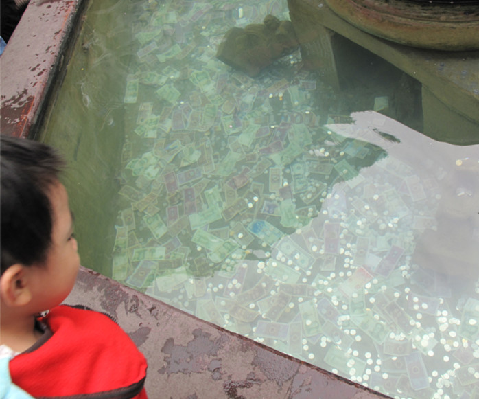 ![]() 我们头天就在都江堰那里自己宾馆了一晚的,早上9点起来的,本来是说8点起来,可罐罐有点感冒,不想起来,就让他多睡一会,反正我们是自由行,也就没这么赶时间的。等两个大,小男人起来了,收拾好背包,退了房间就自己坐公交车到达都江堰风景区的大门了。罐爸就去排队买票,我和罐罐就在外面等着。 ![]() 老远就看见漂亮的花柱子,很吸引人的目光 ![]() 无处不在的大熊猫(这两张是头天下午到达时拍的照片) ![]() 这是第2天早上就已经是很多在排队买票了,还有很多旅行团的呢。 门票也是分的几种,凭当地身份证买票是15一个人,我们买是90,还有几种票价我记不到了,呵呵 ![]() 在无聊等待中,罐罐吵着想要泡泡枪,于是经常他的同意,给他买了个小熊猫,10元搞定,还是很容易满足的 ![]() 一进大门,里面就有很多漂亮的各种各样的花,很美,很好看 ![]() 红色,黄色,玫红色,粉红色,大红色,绚丽多彩呀 ![]() 花的两边是长长的通道,两边有很多这样石刻的雕像,有很多的,我就拍了几张 ![]() 这个也是在长长通道那里的,设计很特别的,由很多小龙的嘴里喷出水来,游客可以去洗手,亲自感受一下的,罐罐可是玩得不亦乐乎,每个都去洗洗,只是那个水很冰的,罐罐洗多几个就知道受不了啦,太冷了,如果是现在去就更冷了,哈哈 ![]() 看看,就是从这里喷出来的,一直 是这样源源不断的 ![]() 长长的通道走完,转角就能看见旁边有好几个很大,很有型的树雕 ![]() 各种各样的神化人物 ![]() 这个一看就知道,济公了,呵呵 ![]() 旁边有个工艺品店,我们也进去看了看,反正不买也没人说你的,就当开开眼界了。 这个桌子好像是67万记不太清楚了,反正是60多万 ![]() 栩栩如生的公鸡 ![]() 这个雕的好像是在悬崖边的各种各样的人群 ![]() 欣赏完工艺品,就要开始往里面走了,还要往上走很长一截,可以看见一个水的分流处,所以必须上去看看。 ![]() 看,咱们罐罐虽然在生病,但都是自己走的,很厉害的 ![]() 上面有个池子,里面有很多钱,当然我们也给罐罐几个硬币让他扔进去,结果罐罐还想要,呵呵。这个意思意思就好了。 ![]() 这是在上面看的一个分流处,水很急,但还是很清亮的 ![]() 现在是要通过这个去对面,人很多,都是必须要自觉的排队走才行的 ![]() 这里是个回水处,仔细看罐罐的后面靠外面的水就一直在流动着,靠亭子这边的水就没怎么动了 ![]() 里面有观光车的,10元一个人,可因为过节,人实在太多了,排的队伍很长很长,我们就懒得去这样排队了,自己走路进去了 ![]() 其实沿途的风景也是很不错的 ![]() 而且竟然还有这样一片树林,很美,很壮观 ![]() 看看罐罐可是没空着,一路可是在边走边玩,精神状态也不错,那象是生病的孩子呢 ![]() 看到前面小姐姐在玩泡泡,赶紧追着去玩 ![]() 知道罐罐这个动作是在干嘛,因为罐爸才被我吵了,罐罐就学我的动作去打他老爸,被他老爸拍下来了,哈哈 ![]() 这边是另外一个卸洪口,如果水太多,就可以从这边通过,减水主水道的压力,现在水没这么多,那这边也就完成没什么水的 ![]() 排队排队,老远就看见在排队了,排这么长的队伍是要干嘛,压力是要经过另外一座桥到对面去。人太多了,必须排队,而且这里还有武警 在守着呢 ![]() 我们在辛辛苦苦排了起码半个小时的队才能上桥了,桥上人很多,都不能停留的,必须是快速度的通过,有专门的工作人员在桥上协调的。桥很晃,罐罐考试还很害怕,我们也只有转移他注意力,叫他害怕时就跳起来,果然,只有罐罐还笑得哈哈的,觉得很好玩了,一点也不怕桥了 ![]() 桥过完,还要通过这里爬到最高处 ![]() 休息休息 ![]() 这里就是最高处,旁边还专门有拍照的在那里摆有张椅子,写的是拜水处,拍张相片是10元,马上就可以取的,很多外地的,和老年人都在那里拍照的,生意还很不错的 ![]() 这是从上面往下看,才知道感觉又不一样的 ![]() 这个在竟然是植物的活化石,殷朝时代的,现在是重点保护 ![]() 这里是最有名的分流处-鱼嘴,远看就象是鱼的嘴巴,这个也因此这样得这个名字的,很明显的,水已经是分成往两边走的 ![]() 图片实在是太多了,我都精减了很多。 风景区里面游完了,这是在旁边的南桥那里,看见有这样踩水车的,踩得越快水就越大 ![]() 罐爸也踩来玩玩 ![]() 很有3D感觉的一副画,就在马路边的 ![]() 就这样走走停停,出来都已经是下午4点过了,本来开始想去青城山的,罐爸说是全部是爬山,我一听就吓到了,而且我对烧香,拜庙是没兴趣的,所以也就没有去青城山了。也就打道回府,回罐罐姑姑家啦。 都江堰的游记就到此为止了,谢谢欣赏。 本作品未经作者许可不得转载,转载请征求作者意见。擅自转载使用,将保留追究其法律责任的权利!