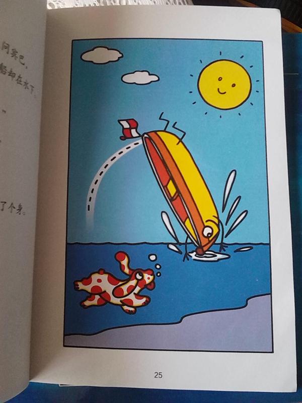 阅读心得:小狗宾巴放暑假了,她划着小船在大海上玩的时候,突然发现水面上有一个奇怪的东西在动,那东西看起来像是一条鱼,但又好像不是。为了弄清那到底是什么,宾巴跳进了水里。原来那是一只小船,只是翻转过来了,里面还坐着一只倒立的小鱼,它还在里面划着船呢。宾巴觉得很奇怪,为什么小船还可以倒立。正和小鱼讨论呢,她的小船也“扑通”一声翻了个身,这下该轮到宾巴倒着划船啦,哈哈,她还挺享受这个特殊的感觉呢。