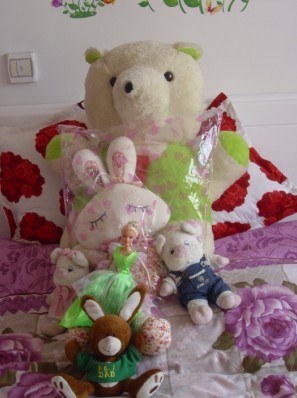 宝宝现在还没出生,也还没准备太多的东西,我们不打算让宝宝单独睡,所以也就没准备宝宝房,刚出生那个还是跟我一起睡比较好,等孩子稍微大一点再打算把隔壁房间收拾出来给做宝宝的房间,不过宝宝奶奶可是一早就准备了好多宝宝的玩具之类的,很多都是亲朋好友家用过的,还蛮新的所以我也就让他留下了,洗洗干净还是一样用的。