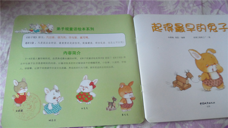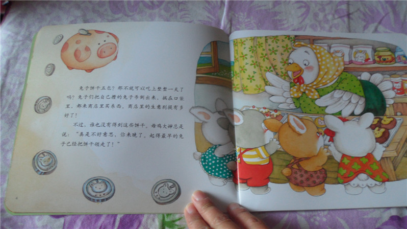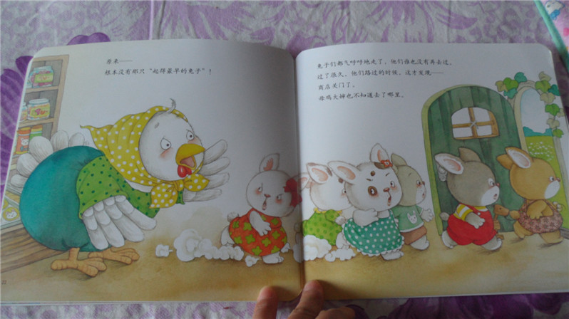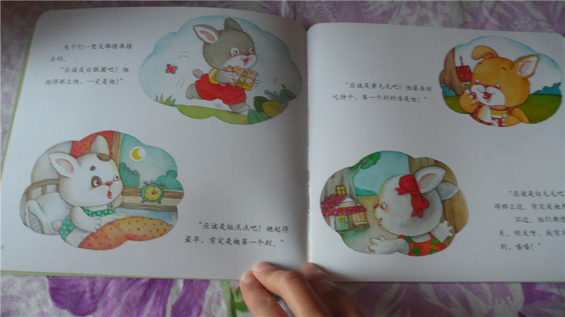 ![]() 阅读日期: 11月12日 参与人员:小甜瓜和妈妈 阅读绘本:《起得最早的兔子》 绘本特色:主要用小故事讲述弟子规之:凡出言,信为先;诈与妄,奚可焉。 适读年龄:适合2+宝宝 阅读心得:今天主要讲述不管是大人还是孩子要遵守承诺,守信用的问题。其实这几天对这个问题相当有感触,不仅我有时候无意中做了“不守信用的家长”,孩子也在做不守信用的孩子。不讲信用的人,害人害己。 至于弟子规那句话“凡出言,信为先;诈与妄,奚可焉”是什么意思呢,亲们大概可以猜出来了:凡是说出去的话,最重要的是讲信用;欺骗蒙混,胡言乱语,这怎么可以呢? ![]() 因为这是地带里兑换的书,大家看还有地带的公章呢,嘻嘻 ![]() 弟子规有云:凡出言,信为先;诈与妄,奚可焉 ![]() 母鸡大婶开了一家商店,为了促销她写了一个广告牌:凡是每天第一位顾客,将免费赠送五包兔子饼干。 ![]() 兔子们看到这个广告都很兴奋,所以都争先抢后还这里买东西,不过好像没有人得到过五包饼干。因为母鸡大婶总是说“真不好意思,你来晚了。起得最早的兔子已经把饼干领走了。” ![]() 兔子们开始去猜到底是谁领走了饼干。黄毛毛认为是白眼圈;白眼圈认为是斑点点;斑点点认为是黄毛毛;黄毛毛认为是白毛毛; 不过,他们都想“没关系,明天我一定第一个到。” ![]() 夜里兔子们都把表上了闹钟。才刚刚四点,四只兔子就起床了,她, 跑啊跑啊跑到母鸡大婶的商店,心想这下可以得到五包饼干啦。 ![]() 可是他们等啊等,总算是等到母鸡大婶来开门。告诉他们“你们来晚了,饼干已经被起的最早的兔子领走了。” 他们都吃惊的说“什么?” ![]() 母鸡大婶说“那只兔子半夜两点钟就敲开了我的门,然后买了东西,领走了饼干。” 兔子们垂头丧气的回到家里。 ![]() 这天夜里,兔子们又把闹钟定在半夜一点。 一点一道,他们就起床奔向商店。并敲开了母鸡大婶的门。 ![]() 母鸡大婶还没有开门,四只兔子很高兴,心想这次饼干一定是他们的啦。 母鸡大婶开门后,四只兔子也买了东西。结账的时候发现并没有送给他们饼干。 ![]() 母鸡大婶说饼干已经被起的最早的兔子领走了,你们来晚了。 什么又来晚了?小兔们的吵闹声吵醒了邻居们,不就全城的邻居都跑过来了。 ![]() 大家都想知道那个起得最早的兔子到底是谁啊。 ![]() 原来,根本就没有那只兔子。 兔子们都气呼呼的走了,以后他们再也没有去过母鸡大婶的商店,不就商店就关门了。母鸡大婶也不知去了哪里。 不讲诚信,害人害己。小盆友啊,要记住,做诚实诚信的好孩子哦。 本作品未经作者许可不得转载,转载请征求作者意见。擅自转载使用,将保留追究其法律责任的权利! 个性签名