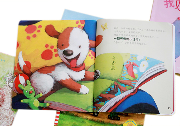 阅读心得: 这只小狗狗是大卫最喜欢的角色之一了,只要拿起这本书,大卫宝宝就会叫:狗狗,然后开心的翻开书页去寻找里面的小狗狗,虽然这本书很多妈妈是放在低幼的推荐里面的,适合18个月的宝贝阅读,但是,我觉得这本书应该是比较适合2-3岁的宝贝的,比如小狗狗穿靴子,穿不同种类的鞋子,这些对于18个月的宝贝理解来说还是有一定的难度的,他会表示不解,特别是对于不同种类的鞋子,更加不会理解这个小绘本要说明的是什么样的道理了。所以,下次选书,要选适合再小一点的宝贝看的书籍,这基本书要囤起来,等大卫大一点了再给他看,也许对绘本中一些事情的理解会多一点的。