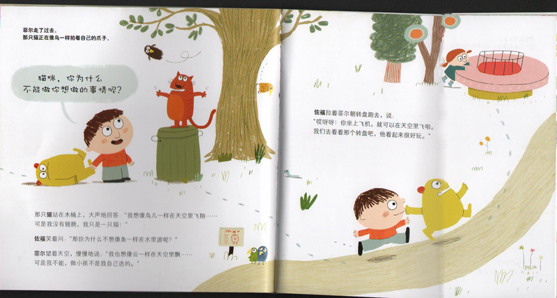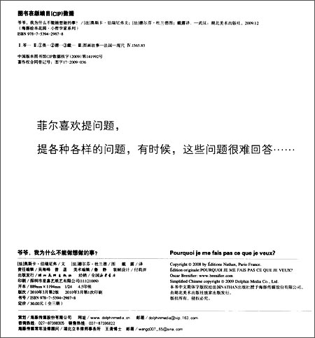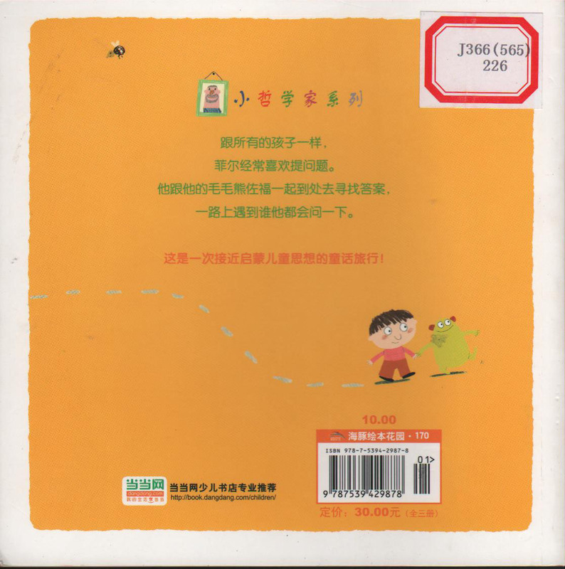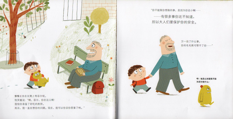 ![]() 阅读日期: 11月17日 参与人员:妈妈和宝宝 阅读绘本:小哲学家系列《爷爷,我为什么不能做想做的事?》 绘本特色:生动有特色的对话,体贴孩子的心理,引导孩子去为自己的问题找答案。 适读年龄: 3-8岁阅读心得: 小哲学家系列画风很有童趣,细节做得也很好。背景地上的小蜗牛,不同类型,不同样子的小树,小草,小花让孩子有更多的乐趣。 这套书有四本,分别是《老师,我为什么要上学?》《爷爷,我为什么不能做想做的事?》《爸爸,你为什么会喜欢我?》《妈妈,我为什么存在?》我只在图书馆找到了三本,还有一本《老师,我为什么要上学?》没找到。 这本书给他读以后就很喜欢,当孩子要做不应该做的事时,我说:“不行。”儿子就会问:“为什么?” 而你有没有这样过?没有告诉他为什么不能这样做,而是说:“不行。”“不可以”。“听话。"在忙碌的时候忽视了孩子。记得有一句话:“孩子的事情无小事。”和孩子展开心灵的交流是重要的事情,他们需要我们家长的关心。这本书也同样教育了我。 ![]() “我为什么不能做想做的事?”小菲尔疑惑地提出了这个问题,儿子也同样跟着菲尔问出了同样的问题。我说:“让我们一起来看吧!为什么不能做想做的事?” 这个问题也许我们用一生去思考也未必能弄明白。对小孩子而言,这个问题也许只是一种困扰。比如不想吃饭,吃零食;不想学习,想玩;上学不想坐着,想玩玩具;不想睡觉,想看电视。很多的事情诱惑着孩子。而把握能做的事情,不能做的事情,是一种活在世上的规矩,一种约束。这套书的答案是:没有标准答案。 菲尔有了问题,就跑去问爷爷,如同儿子有了问题就会问我一样。菲尔的爷爷没有回答他的问题,菲尔就带着毛毛熊自己去找了。书里描绘了菲尔碰到不同的事物,对菲尔不同的态度,给出了不同的答案。当个孩子,还真不容易啊! ![]() 最后爷爷想到答案了:那是因为,你还小,有些东西你并不知道它的危险性,所以大人要保护你的安全。