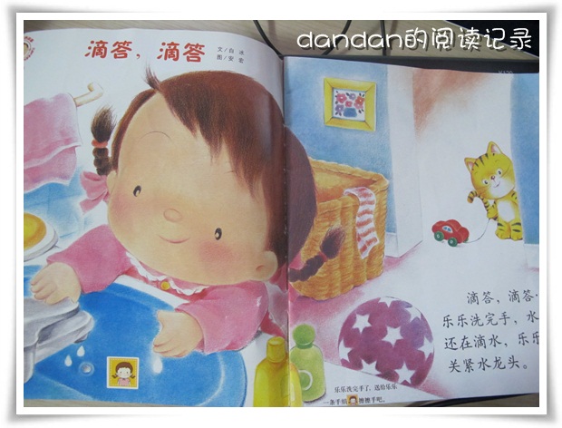 阅读日期:11月20日 参与人员:妈妈和宝宝 阅读绘本:《婴儿画报》 绘本特色: 鼓励宝宝节约用水。 阅读年龄:1~3 阅读心得: 滴答,滴答…… 水龙头的水在滴滴答答地流,乐乐洗完手,看到了就顺手关掉了水龙头。 滴答,滴答…… 窗外传来滴水的声音,乐乐和晶晶想,一定是谁也忘了关水龙头。她俩跑到窗前,要去看看。 哈,原来是天上在下雨呢。 乐乐和妈妈说,妈妈我想飞上天,把天上的水龙头关掉。 妈妈笑着,说这是天上在下雨呢,雨水可以滋润花草,还有池塘里的小鱼儿们。 所以这是不用关掉的啦~~~ 好习惯培养的小故事,总是能从很多细小之处着眼,培养孩子们养成比较好的行为习惯。 例如关上水龙头,就是一个非常小的事情,但它折射出来的行为习惯却能反映一个人的道德品质。 所以,俺们家长也要从自己做起,给宝宝一个好的榜样哦~~~ 遇到别人没有把水龙头关闭的情况,也要主动带头和宝宝一起把水龙头关掉哦~~ 本作品未经作者许可不得转载,转载请征求作者意见。擅自转载使用,将保留追究其法律责任的权利! 个性签名