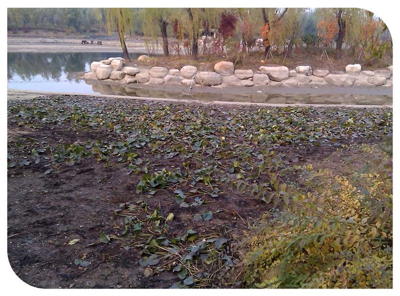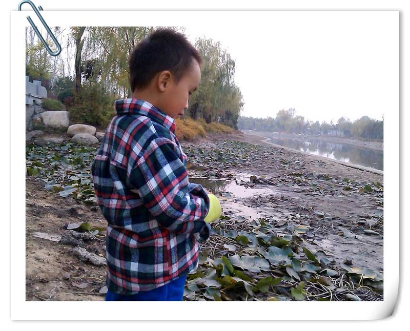 来生态园玩耍的时间是11月初当时也是周末,妈妈因为要参加一个会,所以就由爸爸带着小家伙玩。当天爸爸开车把妈妈送到开会地点后就把谦带走玩了,结果人家选择了带小家伙去生态园玩。这个生态园以前去过一次的,但是没有建成呢,里面的特色以荷花为止。这次去玩的时候因为时间已经是深秋了,曾经盛开的荷叶都已经掉落的差不多了,而且荷花池了的水也几乎都没有了,以前只能远望的荷花如今由于没水的原因却可以近玩焉了......