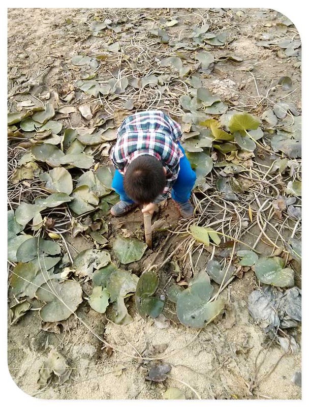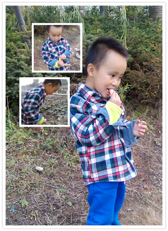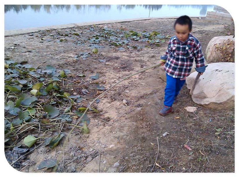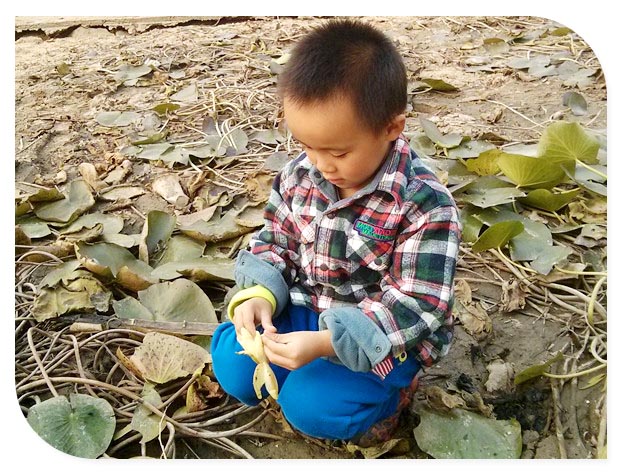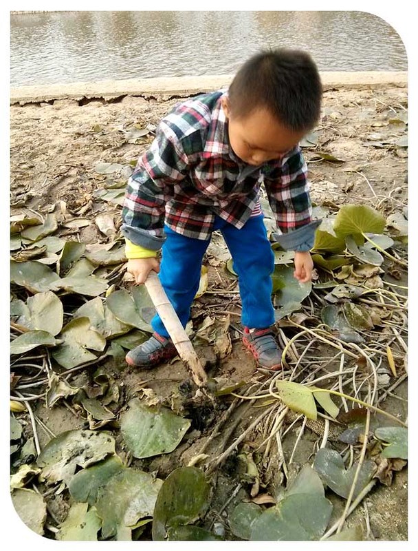 以下照片谦玩荷叶这一部分是谦爸带着小家伙玩的时候拍的,另外的有藕出现的照片是后来接了妈妈后又来玩的时候妈妈拍的,这里得夸一下孩子爸爸,带宝贝玩的时候能想着给孩子拍两张照片算是有进步啊!当时小家伙在几乎干枯的荷花池里面寻找荷花,然后将找到的荷花一点点的撕开扔掉,孩子的乐趣就在于破坏的玩法吧。记得后来谦跟着爸爸去接妈妈的时候小家伙还送给妈妈一朵还未盛开的荷花呢,妈妈心里好美的!