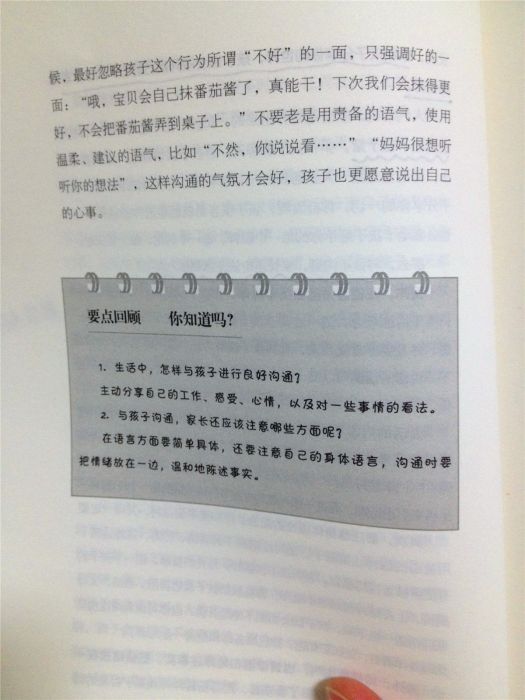 《蹲下来跟孩子说话》这本书用父母们平时的育儿过程中经常遇到的问题,结合很多真实的案例“情景再现”进行详细的剖析,最后又通过“要点回顾”用显目的格式标注了每个章节的知识要点,满足一些忙碌父母们的快速查阅。