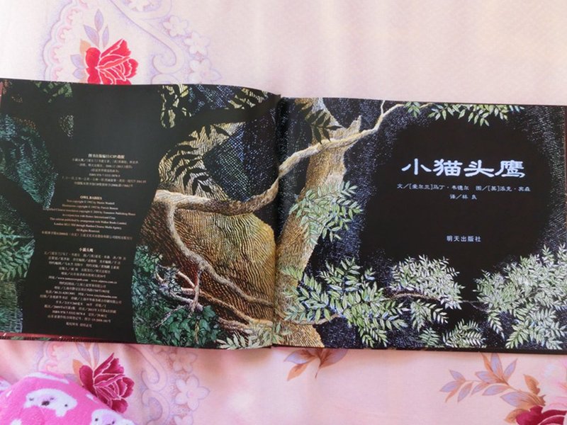 就是这样一个故事,其实,故事的内容再平常不过了,无非是小猫头鹰等妈妈。 但是,作为一个每天都要因工作需要早出晚归一整天见不到孩子的母亲来说,这本书将会是孩子很好的安慰剂。故事将小猫头鹰拟人化,讲述了孩子晚上等待父母下班的情形。有很多的职场妈妈每天都要工作到很晚,甚至当她们回到家中准备为孩子讲她们精心准备的故事的时候,到家却发现孩子早已经熟睡了。此时此刻,孩子们或许浑然不觉,只怕是妈妈心里更难过吧。 所以,这样一本书,无论对于孩子还是妈妈都将是很好的安慰剂。 ![]() 初踏入亲子阅读的我不知道这是不是一本好书,不过,这样一本书,也许并不是很有名,但我确实在彭懿的《世界图画书阅读经典》和《朗读手册》的附录中见到过它的身影。我不知道该怎样挑书,目前依然在学习中!~~~只因为太过于喜爱这本书所以不假思索的买了下来。作为小宝妈妈,我的孩子只有7个月,不过不知道是不是因为我对这本书的喜爱传给了他,每次读到这篇故事,他都显出非常兴奋的表情。也许在孩子很小的时候,他也会被读书人的情绪所感染吧? 因为领导照顾我,让我在家里呆着,不过我不知道在家能呆多久,是一直呆在家里还是明天就上班?单位离家非常远,而且一旦考勤就会超级严,到时候就要每天早上7点不到出门,晚上8点才能回家了。出于生活,总是有太多的无奈,可是没有办法。心情不好的时候看看书,却能得到很好的放松,即使是绘本...... 一天晚上,奶奶没有走路,我拿出了这本《小猫头鹰》给她看,没想到她马上就被这本书精致的封面所吸引。她对我说:“这画得真细致呀,每一根羽毛的纹理上都是那样的清晰可见。”仔细看了以后,才发现是真的。我认为,图画书一定要买手绘的,这样才能看出作者的用心。一直不喜欢那种动画的图画书,也许是受到了某本书的影响吧?但后来仔细看了以后才发现动画的作品确实是比较生硬,而不像手绘的那样富有灵气。 ![]() 因为第一次分享,没有经验,所以没有很好的截图,这点有一些美中不足。可是最近十几天才抽出一天时间拍下了这几组照片,结果因为一时的疏忽,不小心被我删掉了。没办法,还是传到网上来吧,要不又不知道什么时候能照相了。以后再去抽空和朋友分享其他的书。不过,因为孩子年龄太小,所以手头的书数量有限,而且全都是低幼的,请多包涵- -||| ![]() ![]() ![]() ![]() ![]() ![]() ![]() ![]() 这本书的封底和封面是连成同一幅画的,大概有这么大,放在婴儿面前应该不算很大也不算太小吧?