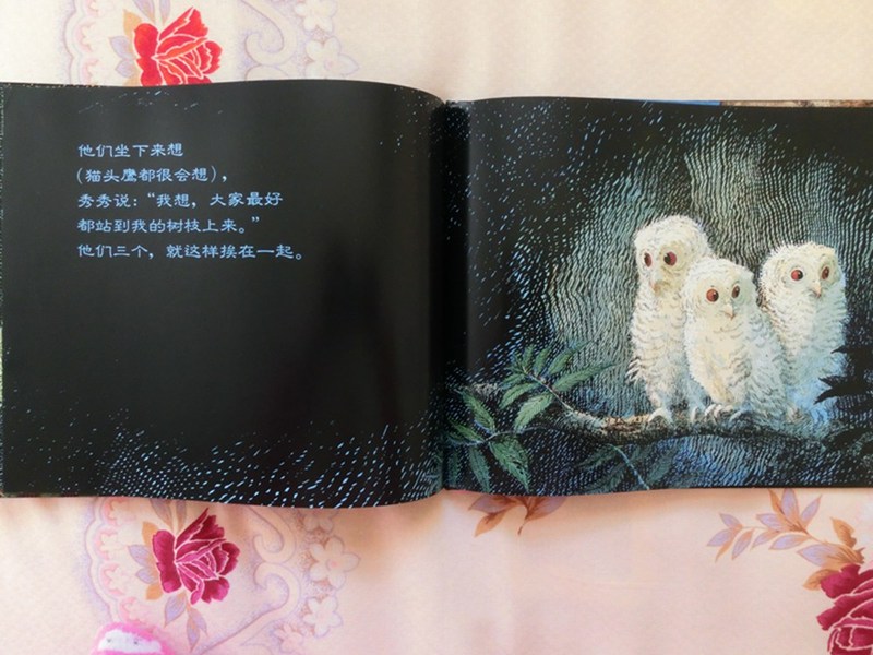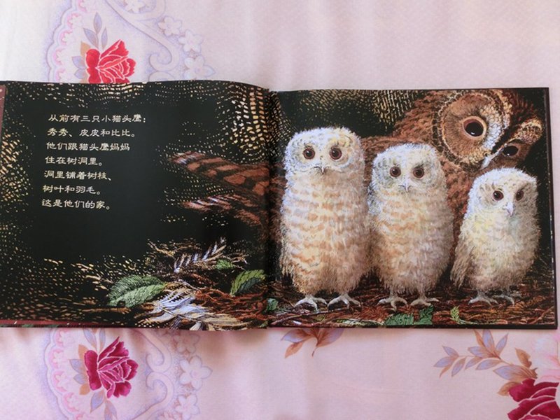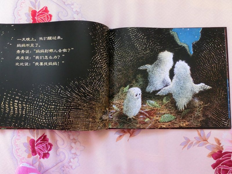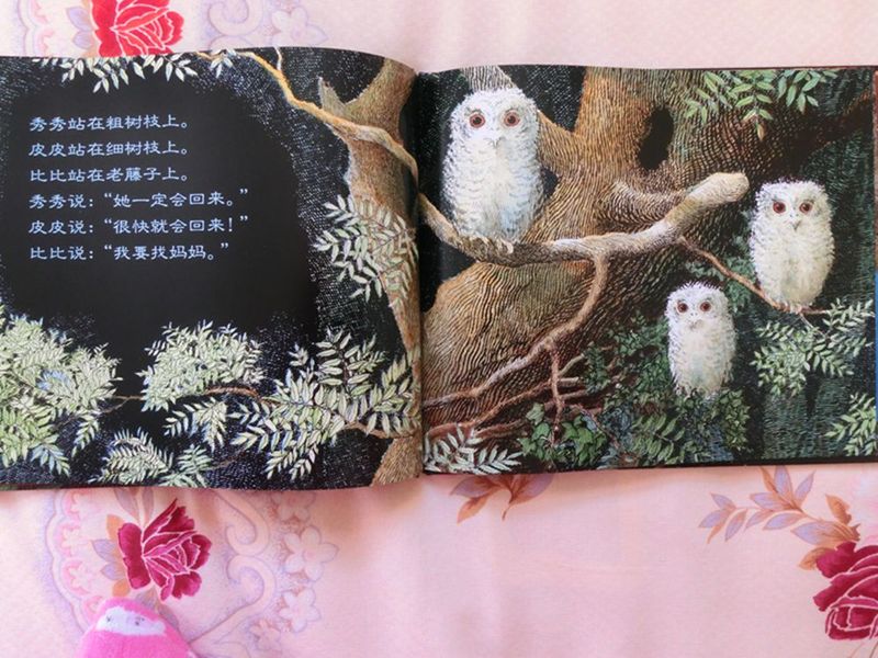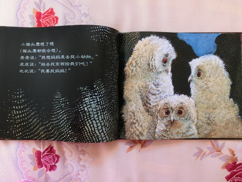 ![]() 第一次知道这本书是在《父母必读》杂志上。没错!~就是那个亲子共读的专栏,每期都像读者推荐一期故事!~那个时候我怀孕,特别喜欢看杂志,于是买来了从2010年到2012年的《父母必读》杂志回来看,也特别喜欢看杂志里介绍阅读的专栏。曾经在每期的专栏里看到了无数的故事,但我却对《小猫头鹰》的故事印象非常深。在我看过的所有推荐的故事中,这一篇是最简单的,但是在我看来,简单的故事或许更加适合小孩子,特别是简单又带着韵文的短小故事。 故事内容真的很简单而看上去也再平常不过了: ![]() 从前,有三只小猫头鹰秀秀、皮皮和比比。 他们跟着猫头鹰妈妈住在树洞里。 洞里铺着树枝树叶和羽毛,这是他们的家。 一天晚上,他们醒过来,妈妈不见了。 秀秀说:“妈妈到哪儿去啦?” 皮皮说:“我们怎么办?” 比比说:“我要找妈妈!” 秀秀说:“我想妈妈是去捉小动物了” 皮皮说:“她去找东西给我们吃” 比比说:“我要找妈妈!” 妈妈一直没回来, 小猫头鹰就走出树洞站在树枝上等 秀秀说:“她一定会回来” 皮皮说:“很快就会回来” 比比说:“我要找妈妈! ” ...... 妈妈回来了 ............................... “妈妈!”小猫头鹰们都叫了起来, 猫头鹰妈妈说:“干吗这样心慌?你们应该知道我会回来的。 ”小猫头鹰们想了想, 秀秀说:“我早就知道。” 皮皮说:“我也早就知道!” 比比说:“我好爱妈妈!”