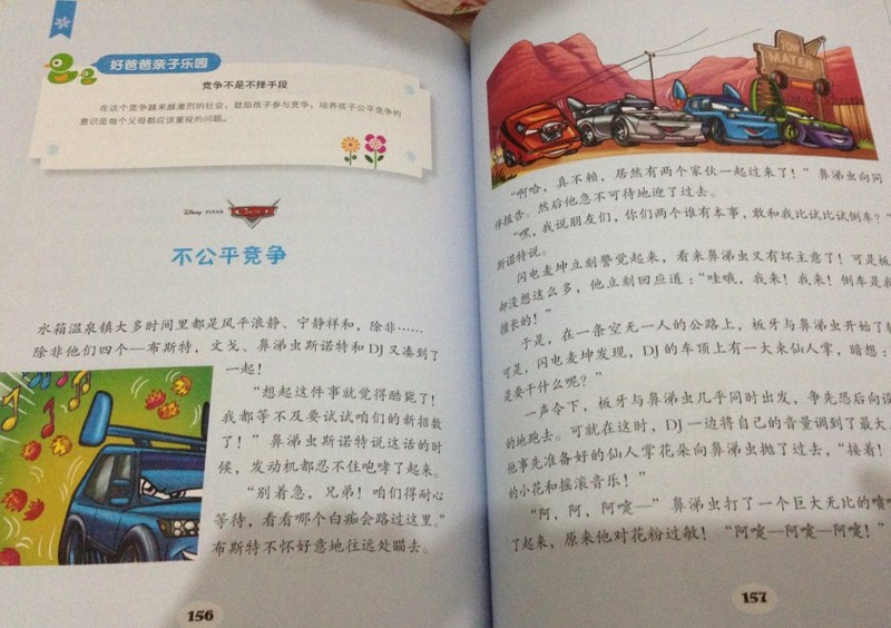 ![]() 阅读时间: 11.27 阅读成员: 妈妈 宝贝 绘本特点: 通过比赛让孩子明白一个道理,任何比赛都是有规则的,没有捷径可以选择的.只有通过自己的能力才可以让人尊重和佩服. 适合年龄: 5岁以上 阅读心得: 这个小故事是爸爸给我讲故事中的一个小故事,儿子特意翻看了厚厚的一本书之后首先选择了这个故事,因为是和车有关系的.再次显现出了车在儿子心中的位置和重要性. 故事讲的是赛车总动员中的鼻涕虫,文戈,布斯特和DJ几个凑到一起要寻找和他们比赛的汽车,这个时候板牙出现了,板牙并不知道鼻涕虫他们其实是有诈的,答应同意和他们比赛.比赛过程中DJ将事先准备好的音乐放到了最大音量,把仙人掌花朵扔给了鼻涕虫,这两种东西就为鼻涕虫增加了助力,速度由此变的非常的快,自然最后赢得了胜利.闪电麦坤看出了他们的伎俩,为了教训它们这种不公平的行为决定由它来选择场地,目的就是让他们记住了,不鞥这样的去赢得大家对你尊重,迟早是要受到惩罚和恶果的. 刚好昨天晚上牛和姥爷下棋了,下棋的过程中牛有时候会不按照规则玩.讲了这个故事,我对牛强调了什么样的比赛,即使是玩也都是有规则需要去遵守的,只有按照规则来才能提高自己的技术得到最终的胜利. 故事的确非常适合爸爸来讲. 本作品未经作者许可不得转载,转载请征求作者意见。擅自转载使用,将保留追究其法律责任的权利! 评分记录
